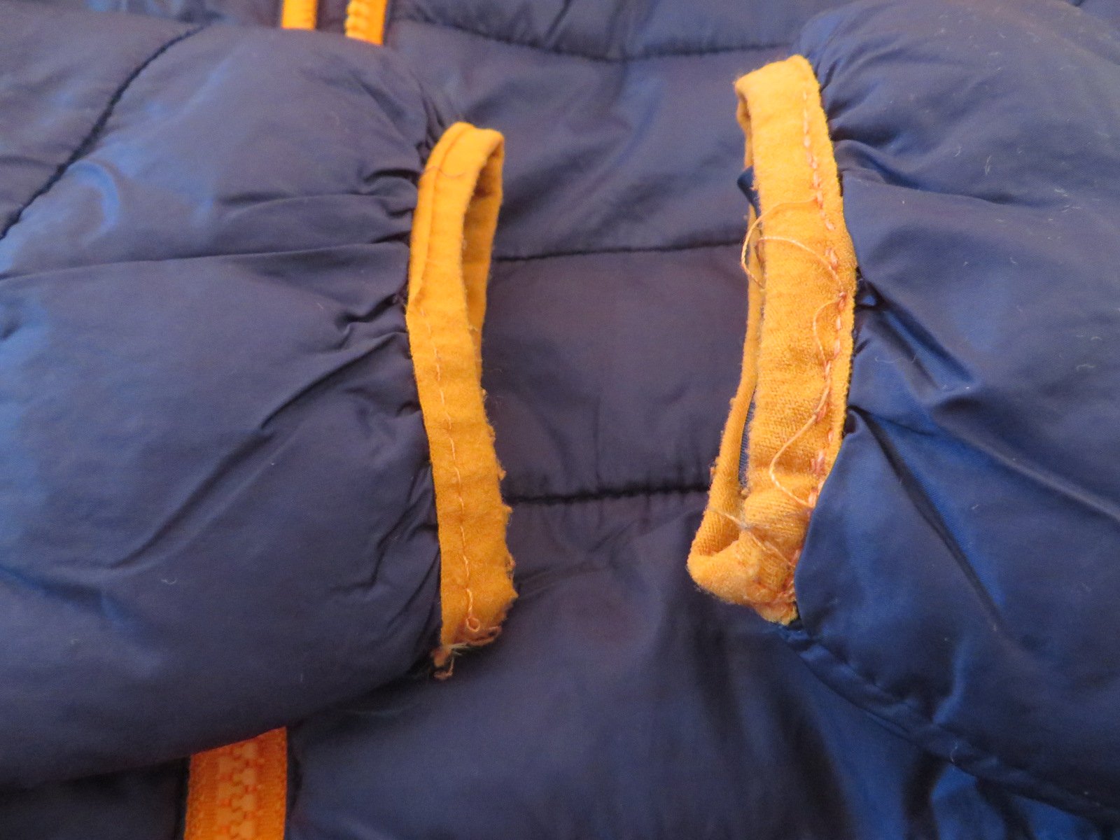 Predám nosenú prešívanú chlapčenskú bundu, veľ. je 134/140. Veľkosť je písaná na štítku 140, ale syn ju nosil už pri veľkosti 134. Preto uvádzam veľkosť 134/140. Nosenie je vidno na rukávoch, tie oranžové lemovania sú žmolkové. Ináč je bunda v dobrom stave vhodná aj do školy.