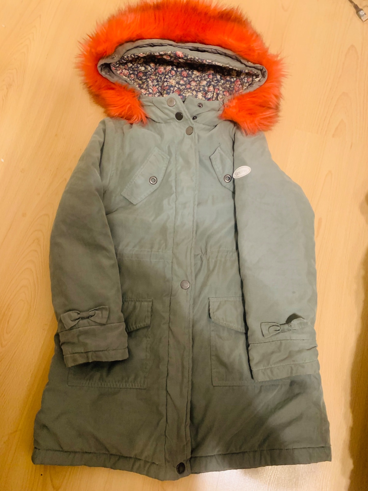 dobrý stav.zapinanie na zips. 2 bočné vrecka zapínanie na patent. kozusinka na kapucni sa da odopnut. dĺžka chrbta 50 cm. rukáv od ramena 57 cm.
