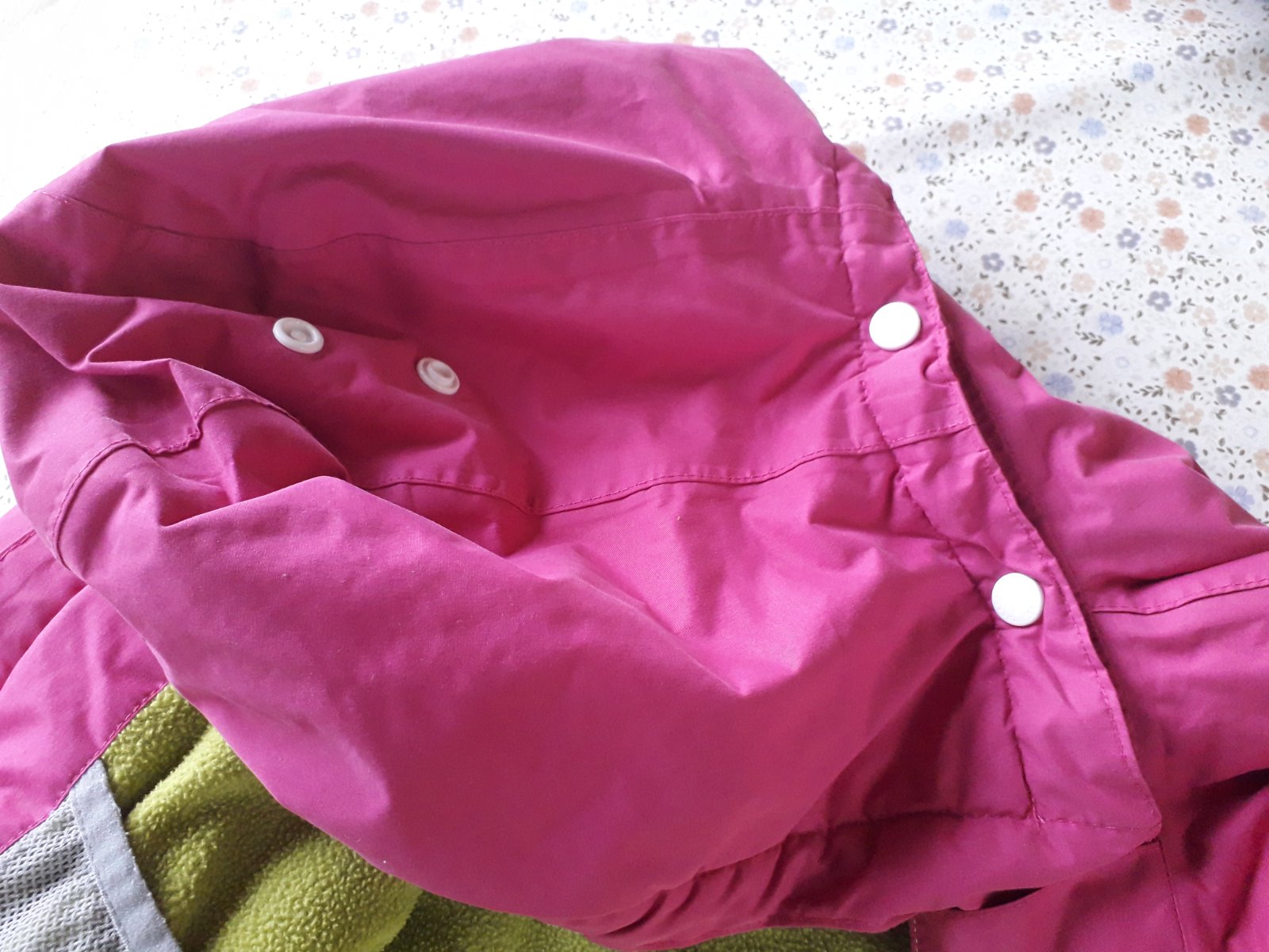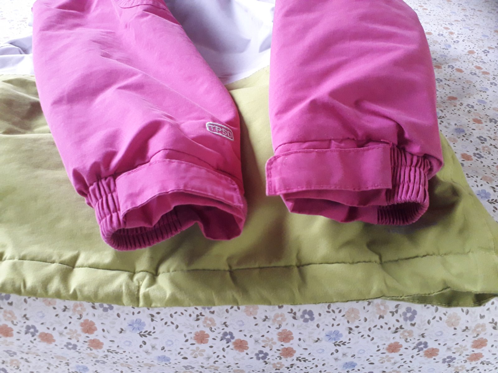 Zachovala,nepremokava, vod.stlpec 5000, zips Ok, nezodrane rukavy, drobne vady- vid foto: ciarka asi perom na vacku a na rukave bledy fliacik, vzady cca 0, 5 cm dierka na chrbte a minifliacky asi5 na bielej casti, nejde ani odfotit, na latke na vnut. casti , co je dolu proti vetru a snehu su mini sede bodky , ine nevidim. Rukav 50 cm, celk.dlzka 58, pod pazuch.45,5 cm