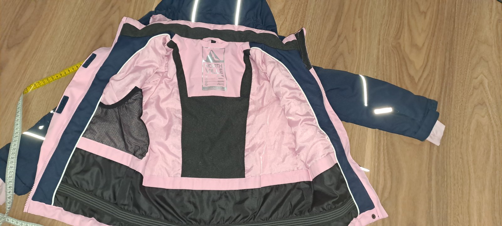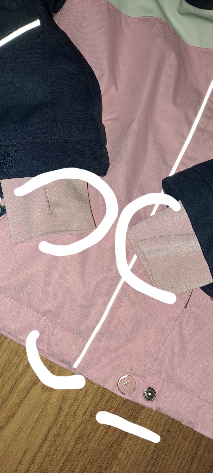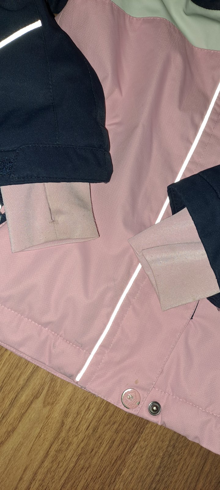 Zips na rukave super na skipas, vnútri dole guma aby nepodfúkla. Žiaľ patenty nešli opraty, ale to nie je vidno. Pre malú lyžiarku/sánkarku/snowboard ku super