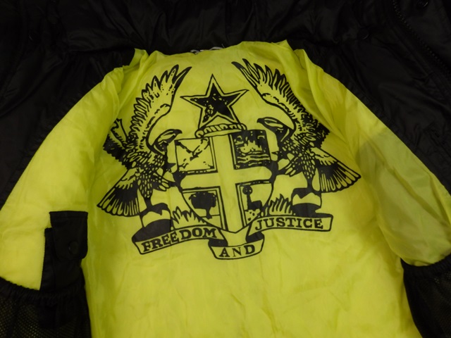 Luxusná pánska čierna bunda s neonovožltou podšívkou, na ramene nášivka, vzadu potlač, zapínanie na zips a lébu s cvočkami, vpredu vrecká na zips, vnútorné patenty na rukávoch, podšitá, oteplená, odoberateľná kapucňa s kožušinkou, nová bez visačky.