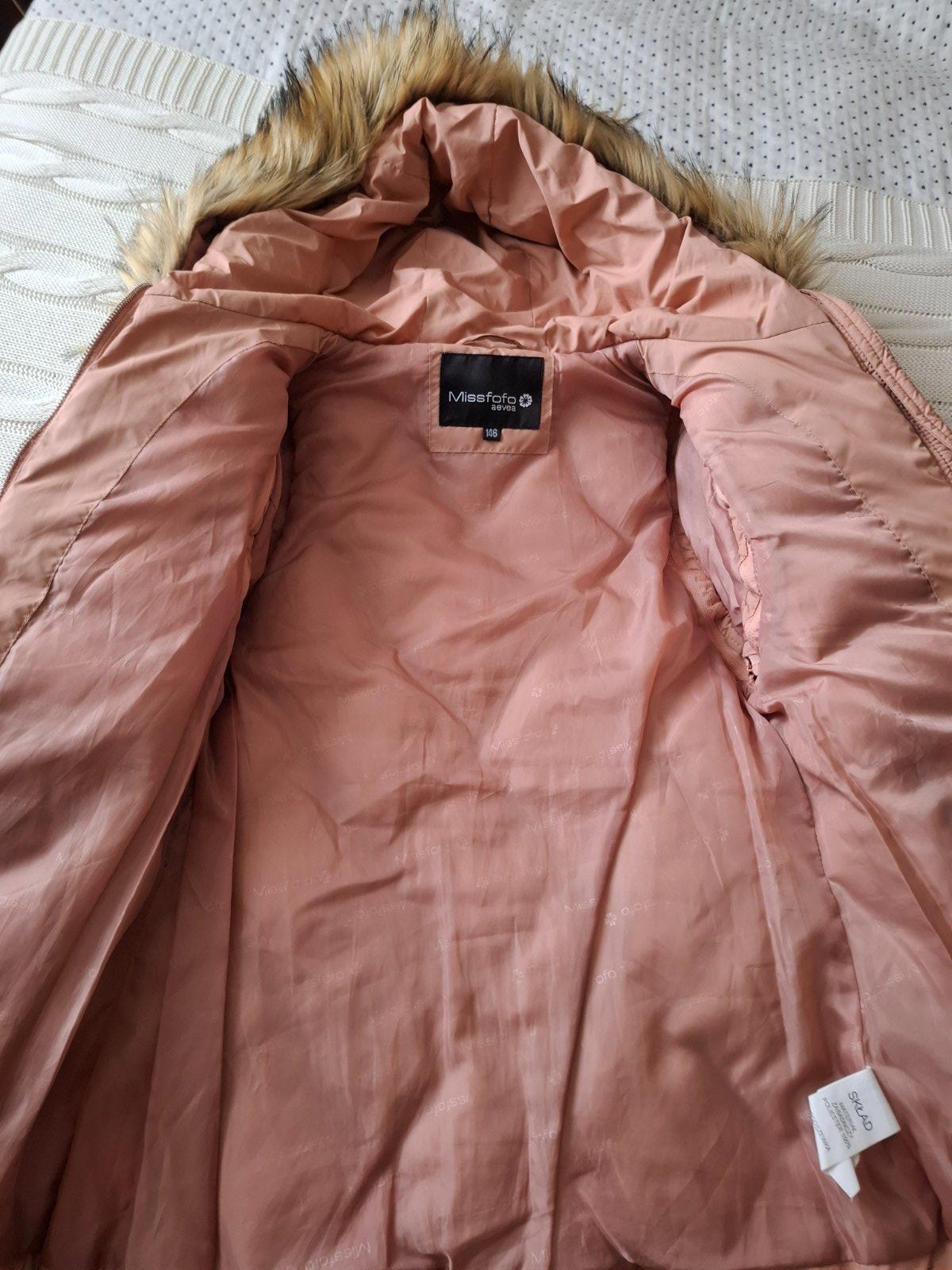 Pekná zimná bunda s bohatou odopinacou kožušinkou. Z bundy sa dajú odopnúť rukávy a dá sa nosiť ako vesta. Veľkosť uvedená 146, dcérka ju ale nosila ako 140 na striedačku s inými bundami. Bez poškodenia