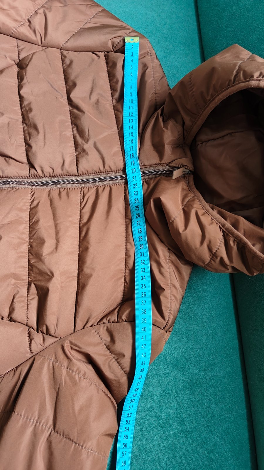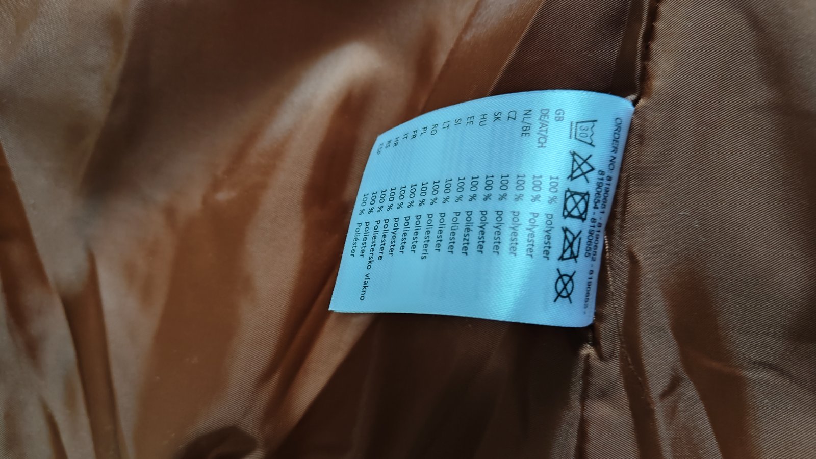 Nosena ale zachovala, tepla, v zltohorcicovej farbe, zips funkčný - jedna chyba popri zipse lemovanie popraskane( nieje to velmi vidno). Dĺžka do pol bokov resp podľa postavy. Zadný diel trochu pre...