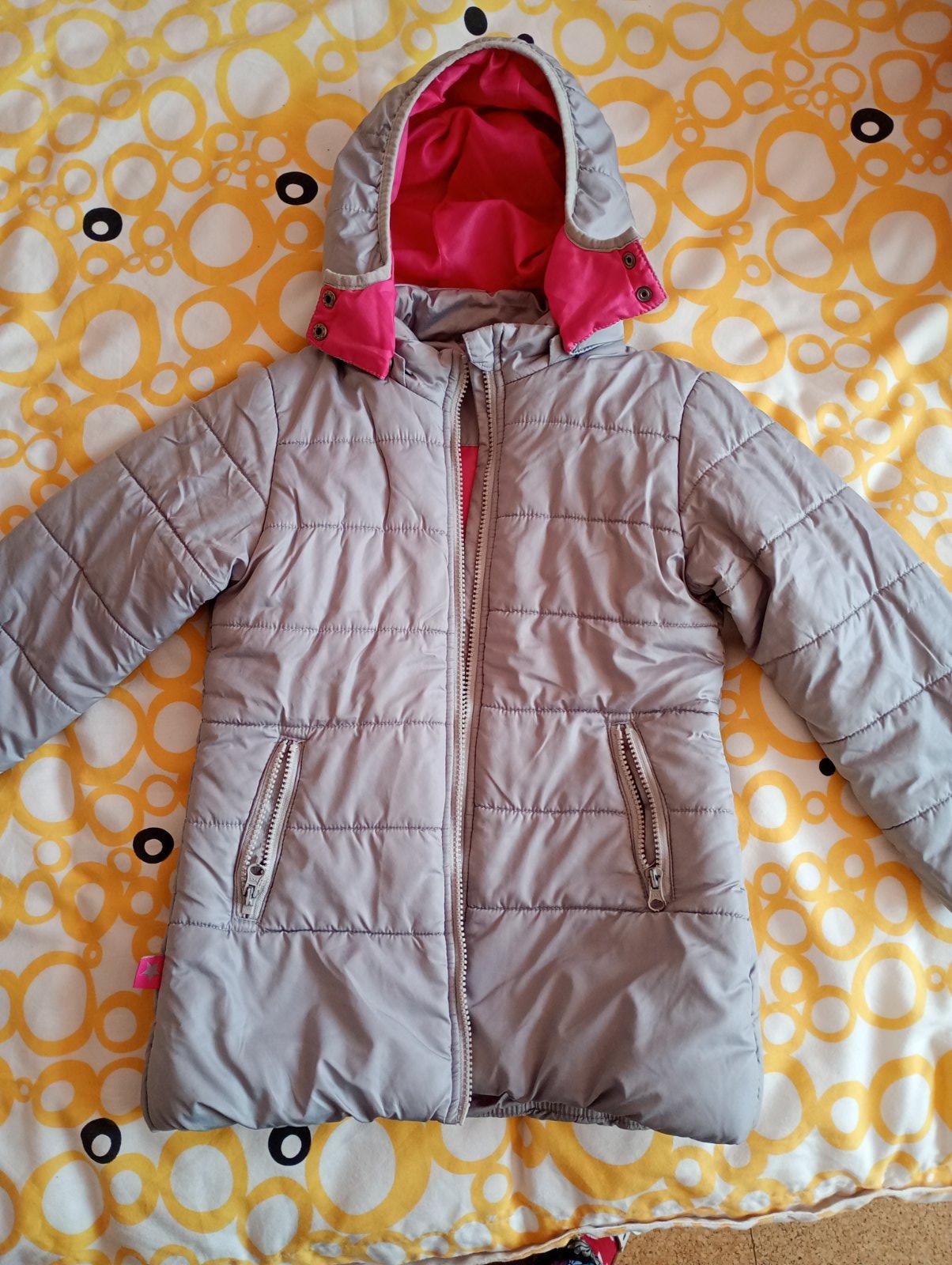 Ponúkam prechodnú vetrovku pre dievčatko na 5 až 7 rokov vetrovka je dlhá s kapucňou 69 cm bez kapucne má 45 cm a rukáv od krku má 52 cm je bez poškodenia a podsita