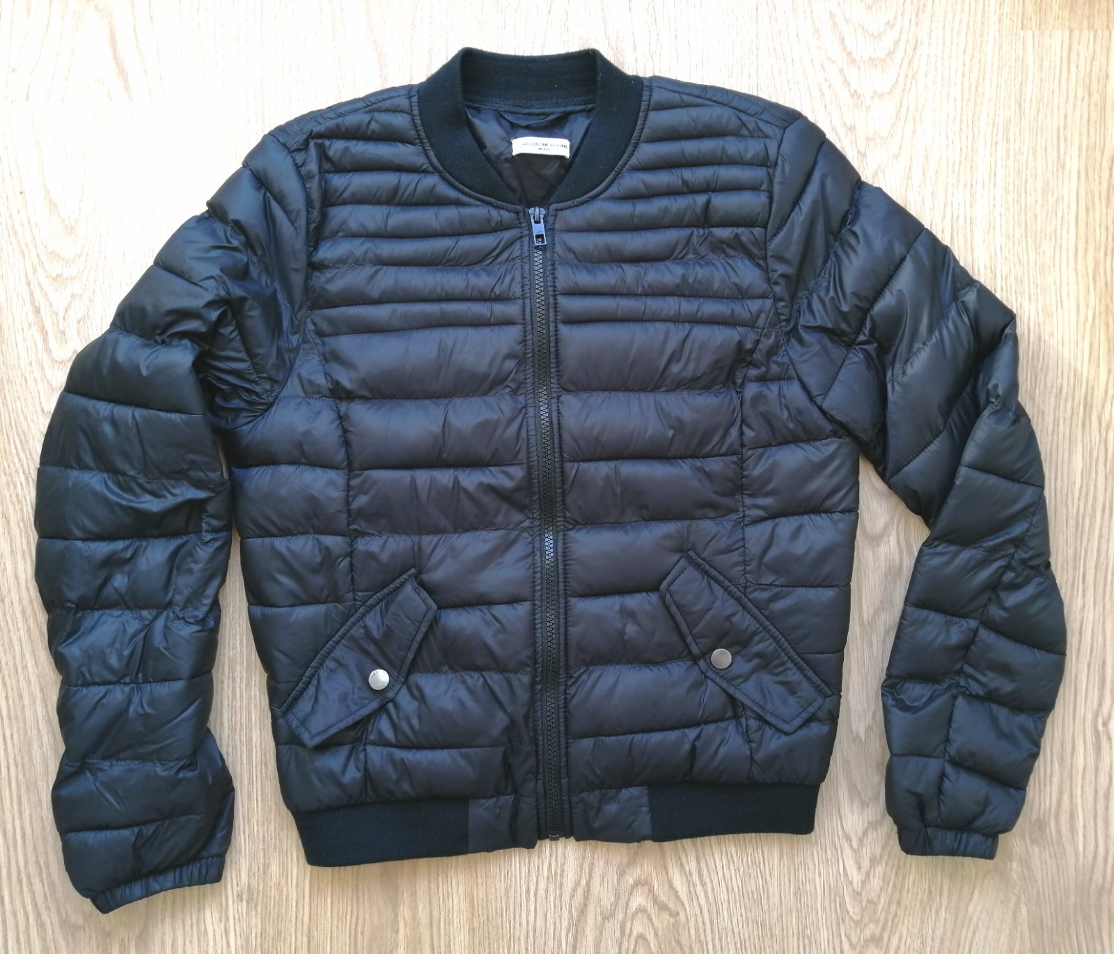 Ľahká, vatovaná bomber bundička v čiernej farbe, vhodná na prechodné obdobie, so zapínaním na zips, vpredu 2 funkčné vrecká s prekrytím a zapínaním na cvoček podšívka v čiernej farbe.