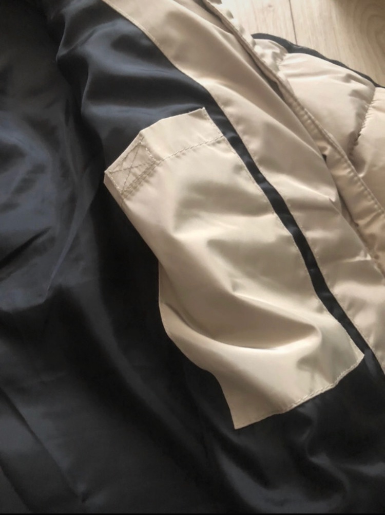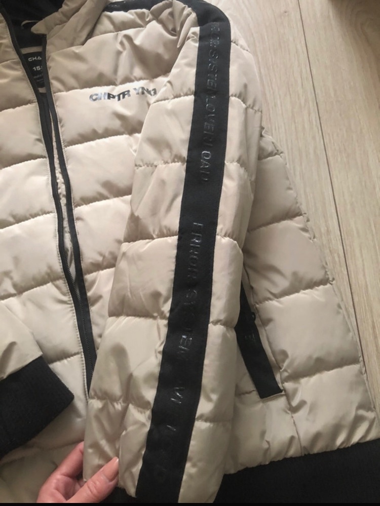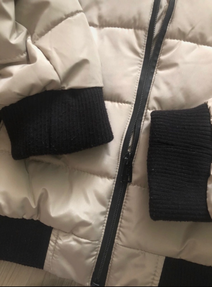 Bunda je vo veľmi peknom stave bez poškodení. Krásna béžová farba. Vobnútri nepodsitá ale tepľúčka. Ukončená do patentov (na rukávoch trošku žmolky).