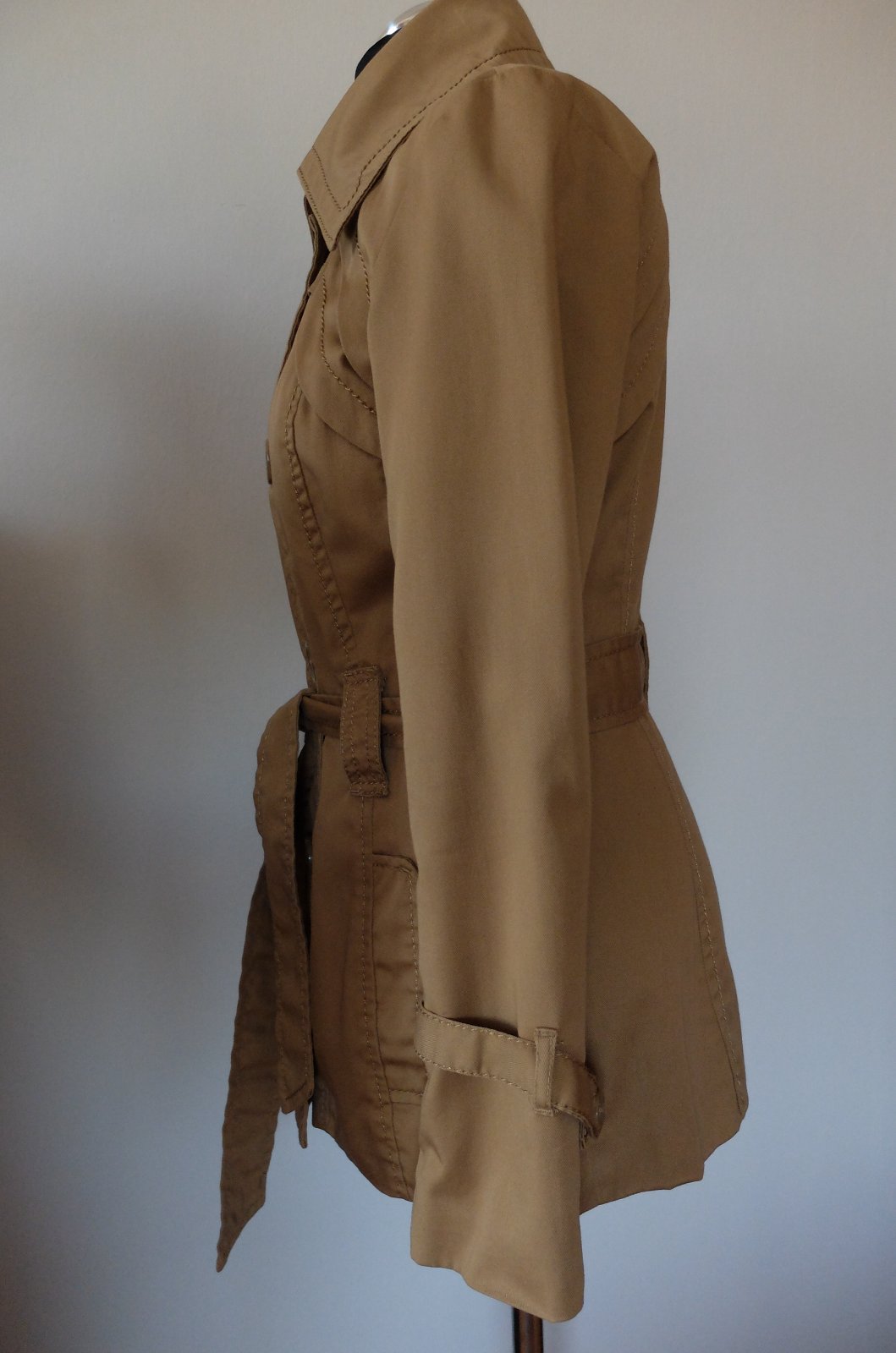 Prechodny flaušovy podšity kabatik,vo vybornom stave,farba ako na foto,v.-XS,ale je vädši premerajte-š.pod paz.-46x2cm,dlž.od ramena-79cm,dlž.ruk.od krku-68cm