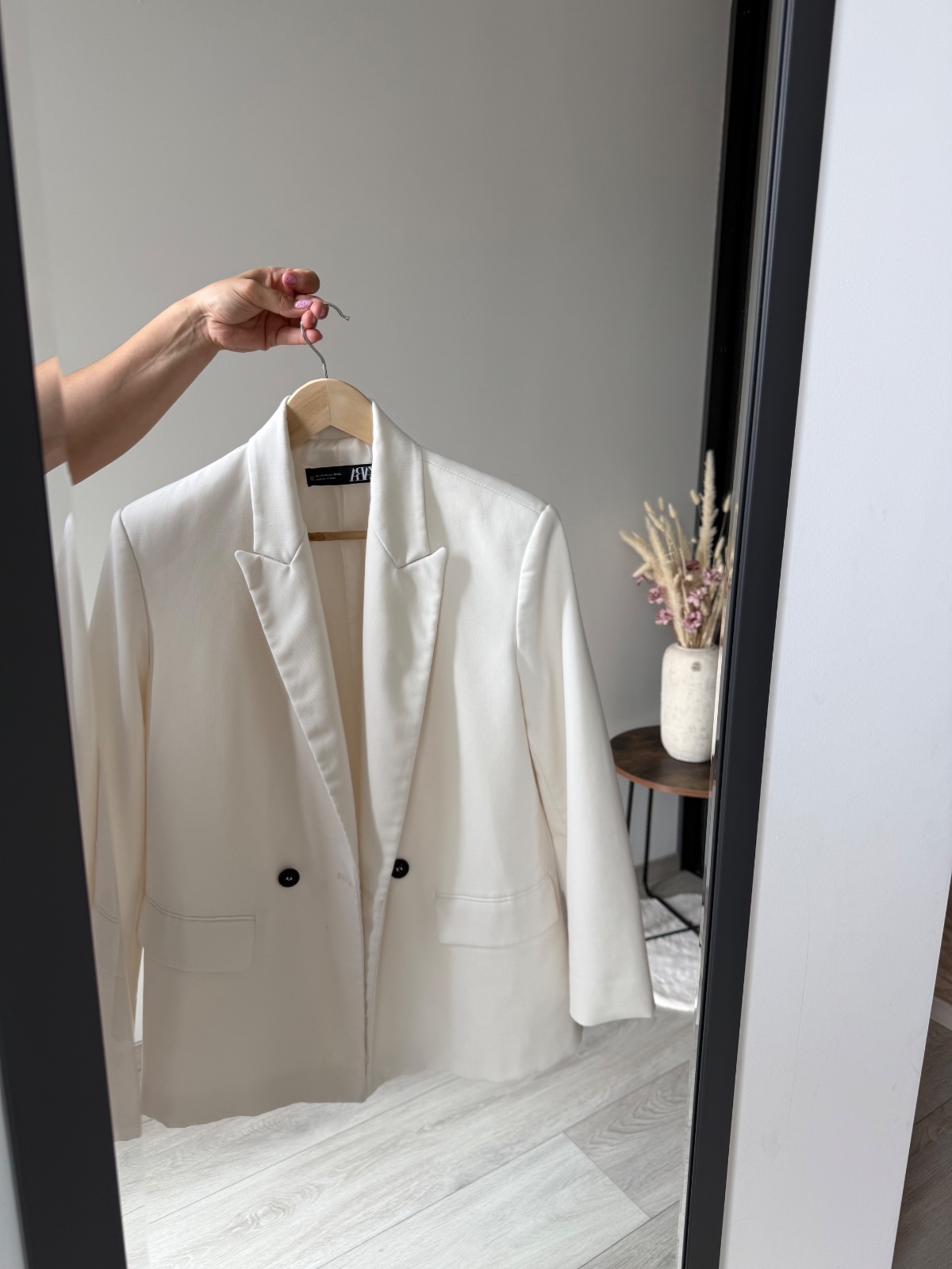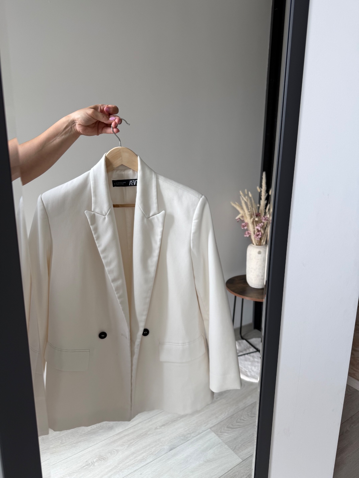 Zara znackovy blejzer - sako alebo kardigan bez zapinania Je tvarovane , pekne sedi na postave. Ma bielo-kremovu farbu Cardigan je podsity velkost sedi na XS dlzka 63/71 cm prsia 39-41x2 B14 at