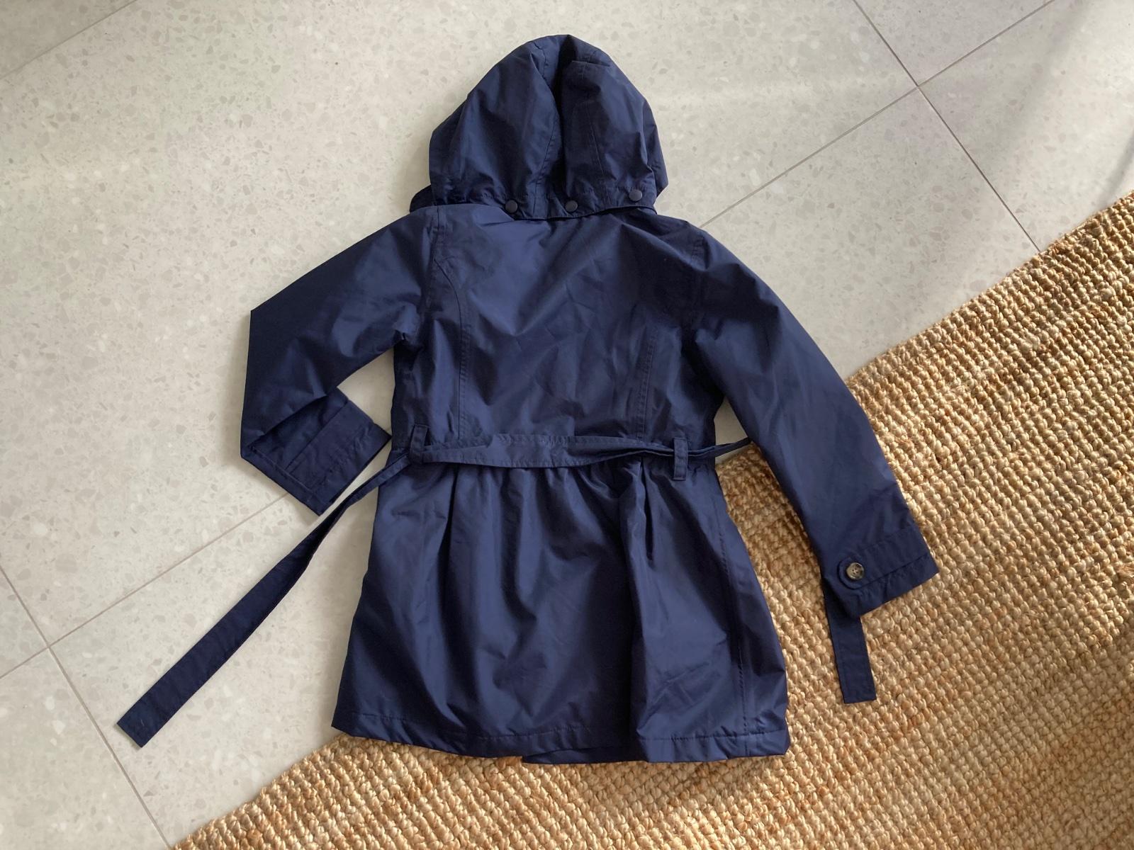 Krásny elegantný kabátik s kapucňou a podšívkou len 2x vzatý, čiže ako nový. Skvelý materiál, sedi od 122 do 128