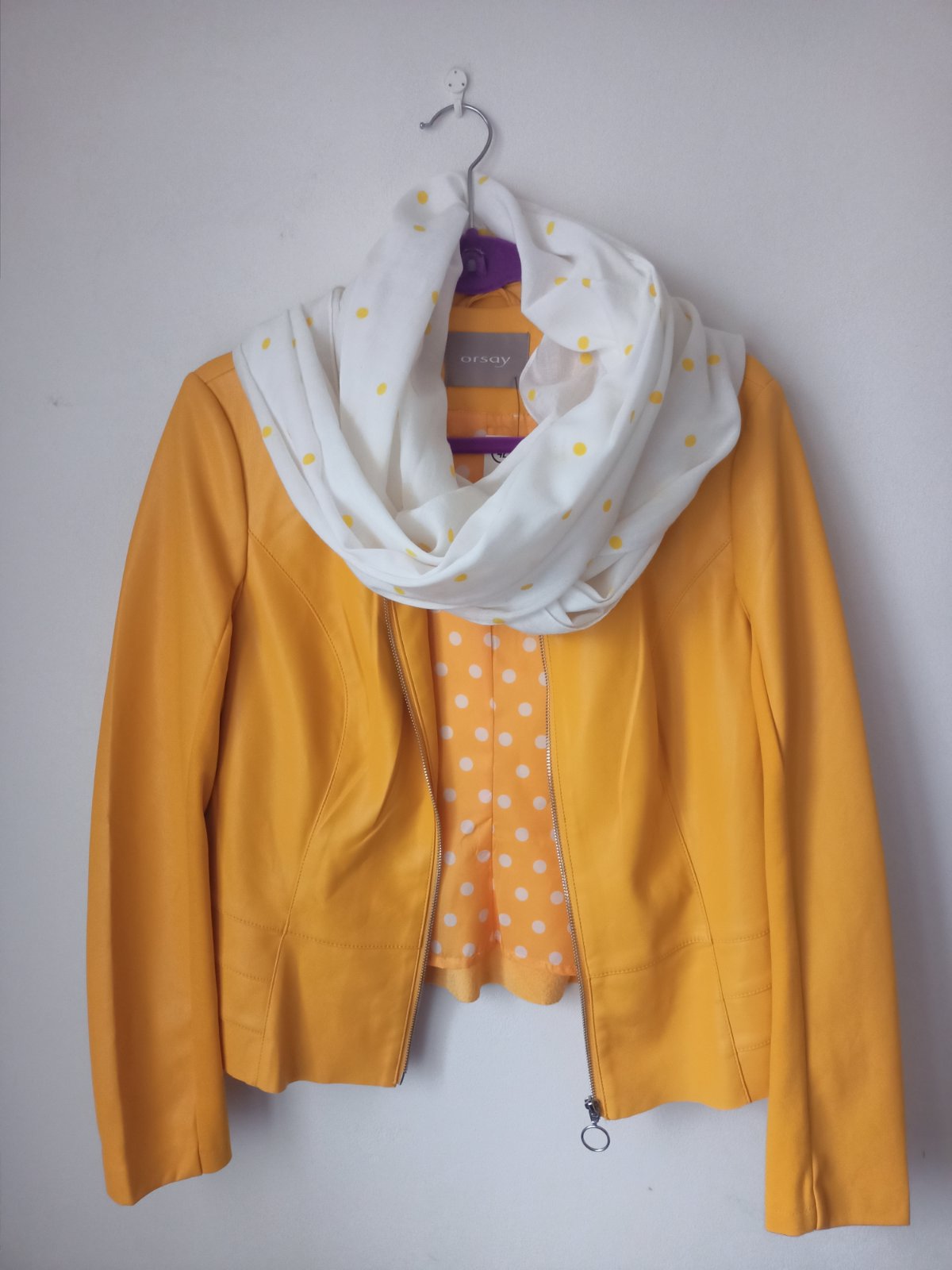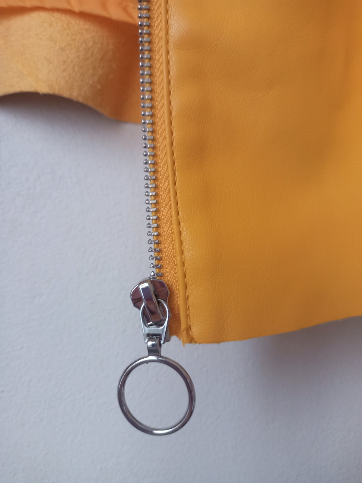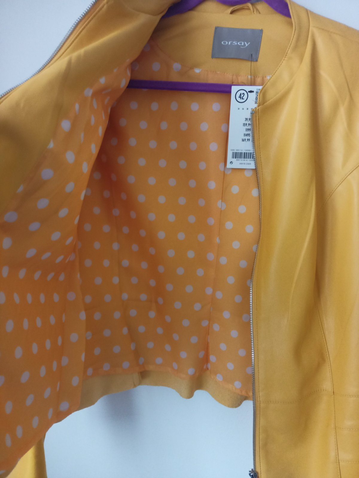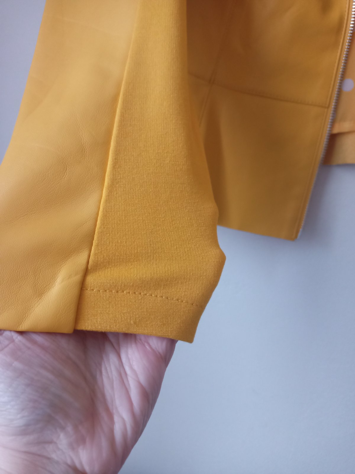 Nová slniečková jemná koženka s visačkou - pri fotení sa mi odrhla :(