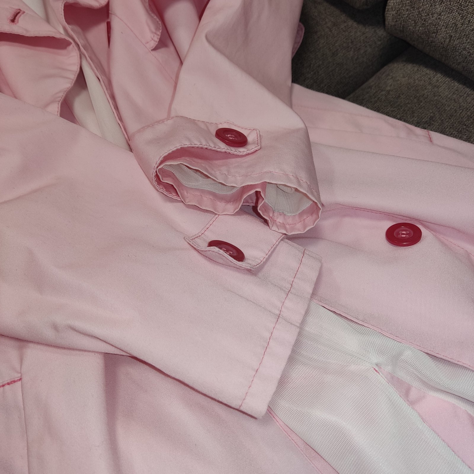 Predám trenčkot vo výbornom stave. Farba baby ružová. Opasok. Nie je uvedená veľkosť, preto sa radšej riaďte rozmermi.