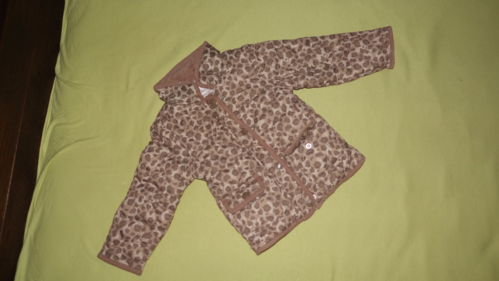 Krasna leopardia bundicka vo velmi dobrom stave. Je podista flisom a mierne futrovana, takze tak do teplej zimy, studenej jari. Je ovela krajsia ako na fotke- vyraznejsia.