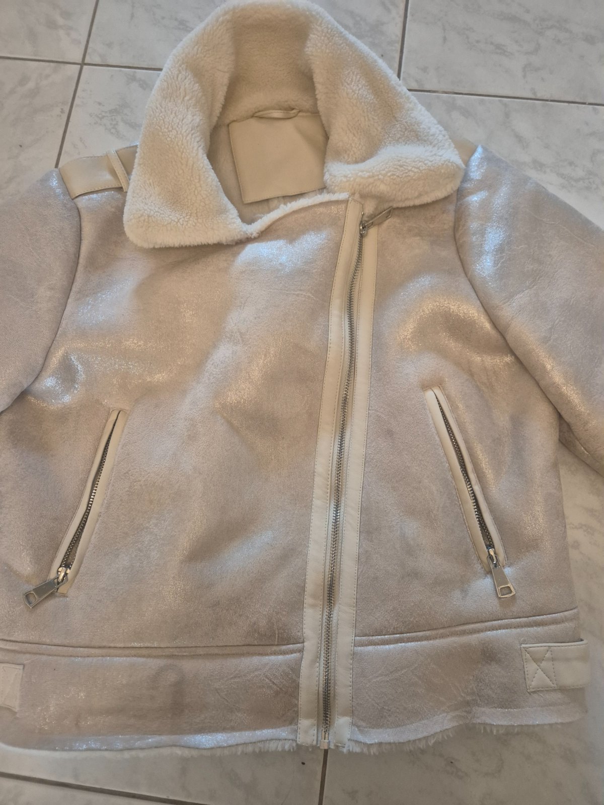 Predám krásnu semišovú bundičku celú zateplenú aj rukávy metalickej farby,2krát oblečená,značka Tu,vel.uni ale sedí na XS-M cena 18€