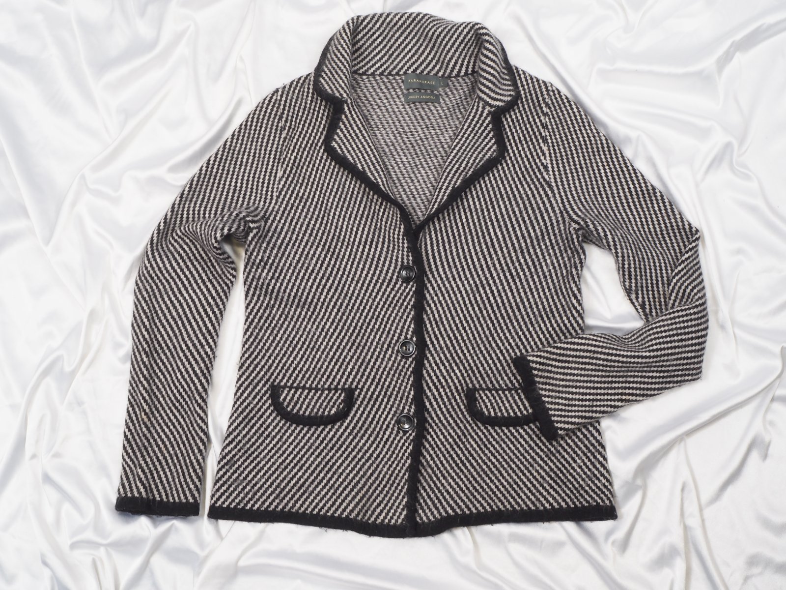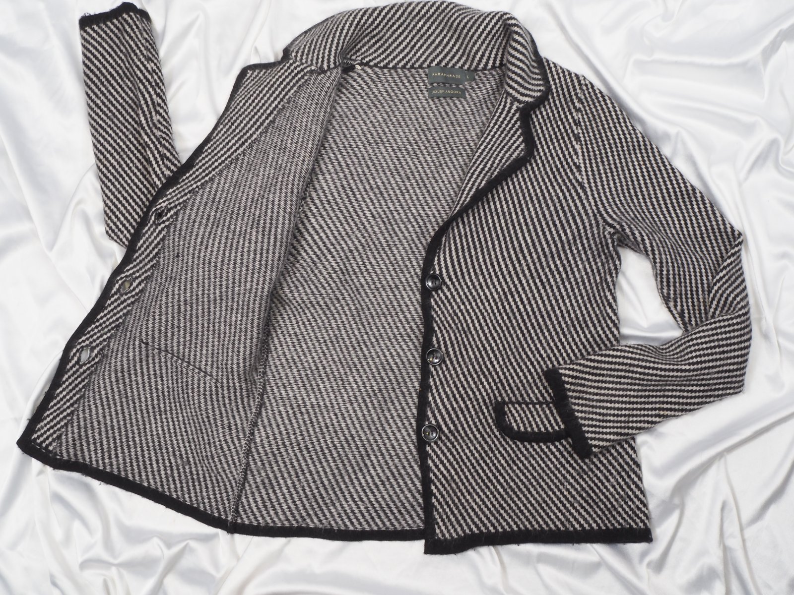 Kvalitný béžovo-čierny vlnený blejzer, zapínanie na gombíky, materiál 70% nylon, 30% angora, super stav.