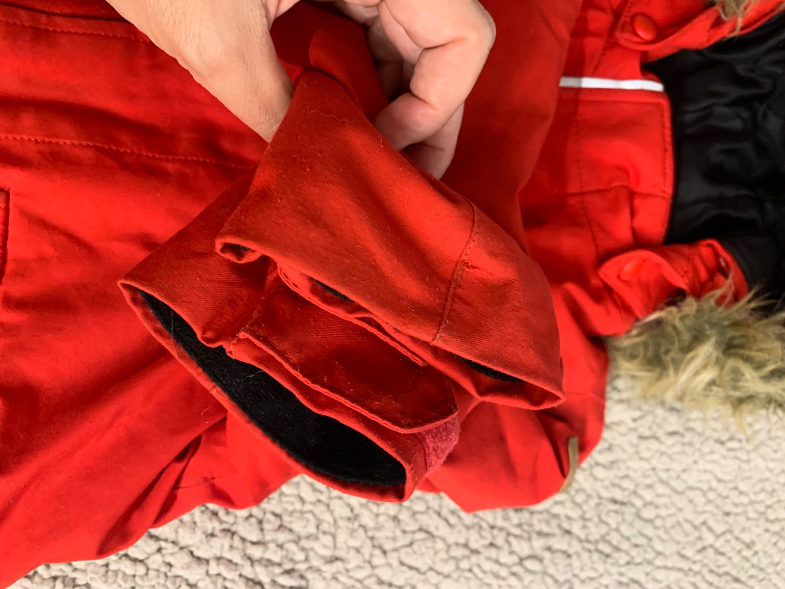 Nepremokavá a neprefúkavá. Odnímateľná kapuca ako aj kožušinka na nej, 2 vrecká, kopec reflexných prvkov. V páse sa dá stiahnuť, perfektne sedí na postave.