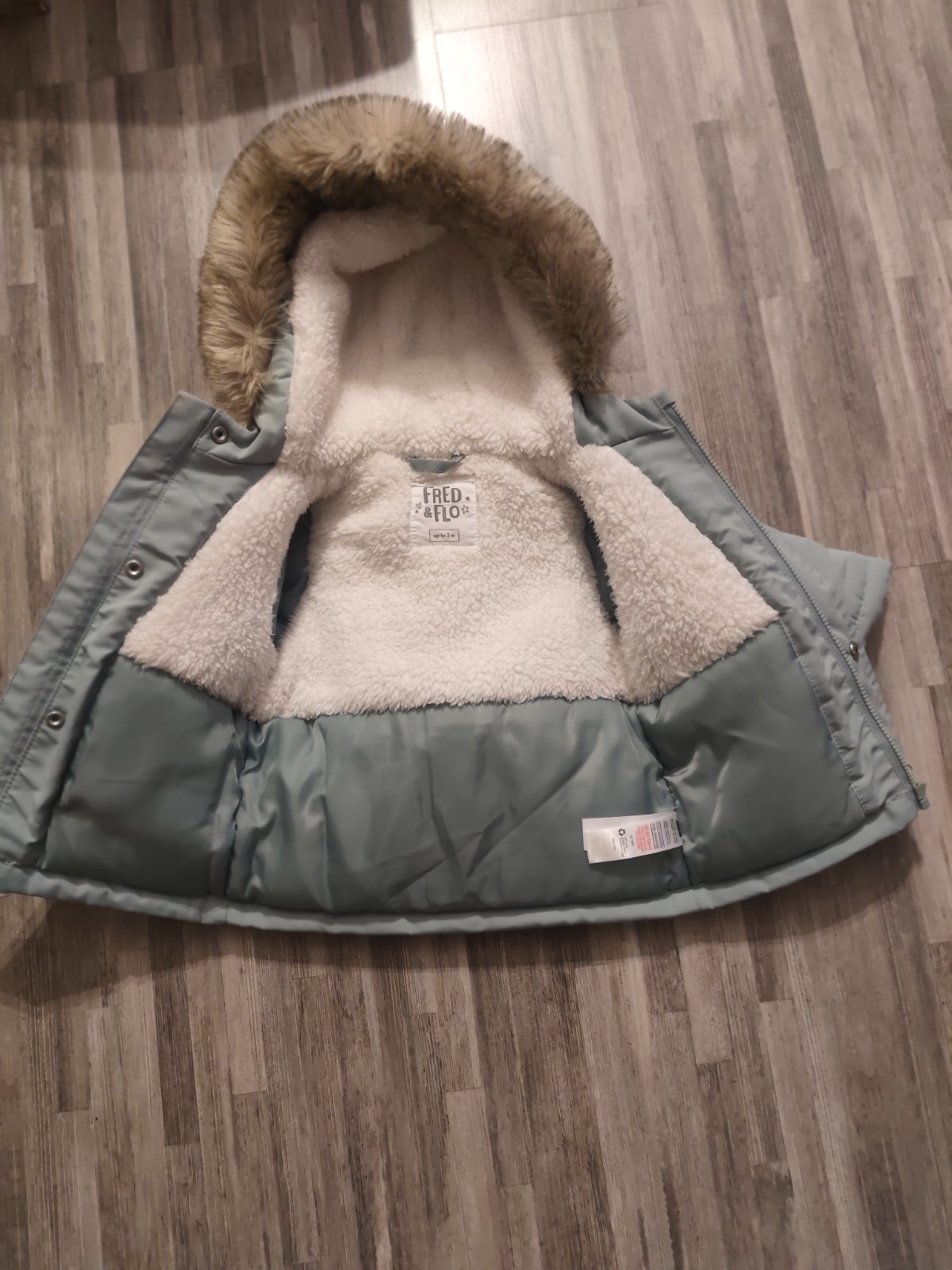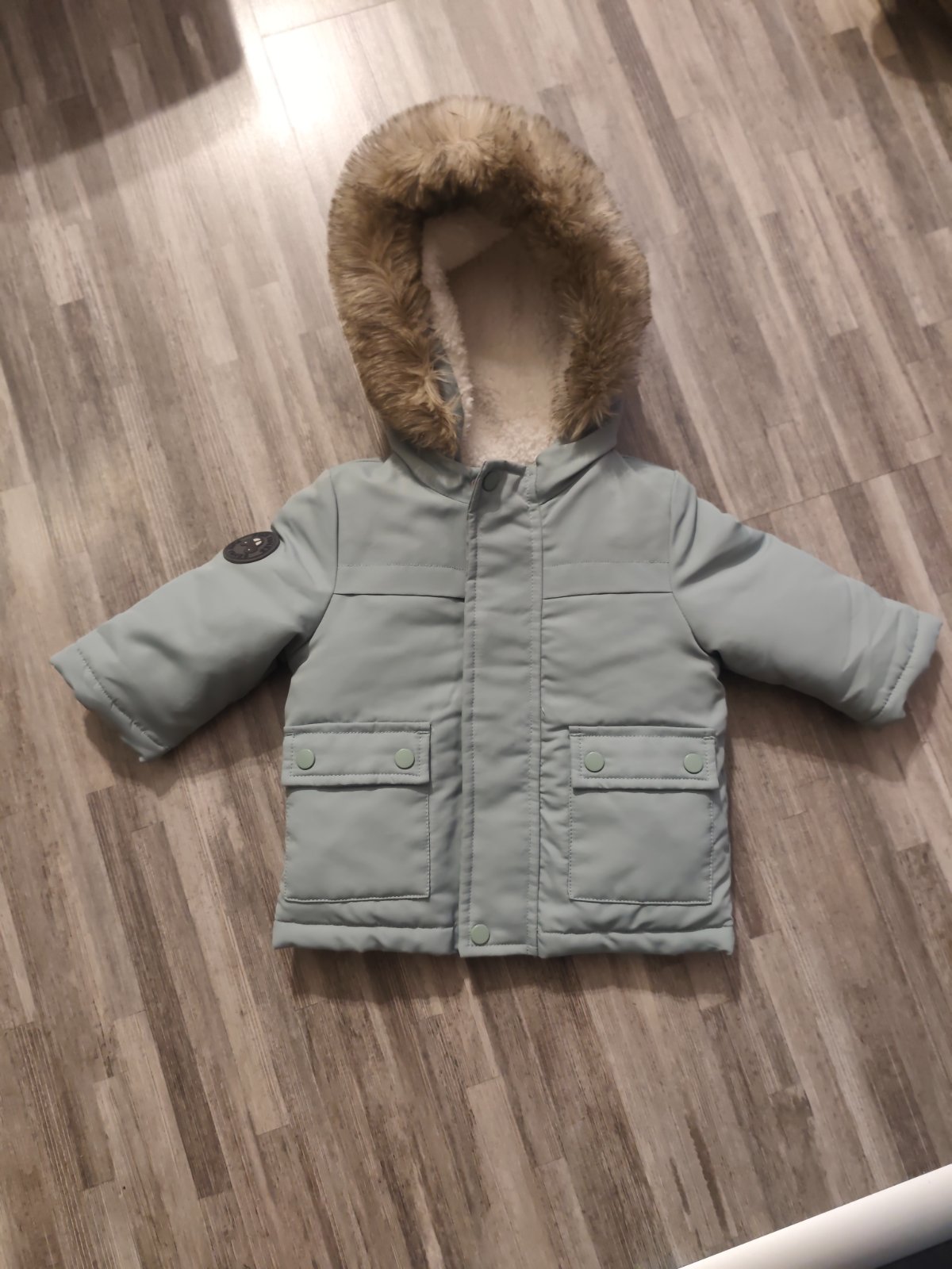 Predám málo nosenú bundičku zn. F&F spolu s čapicou (nenosenou) zn. Babaluno veľ: 0-12 mesiacov. Vecičky sú bez poškodenia , v tom stave. Bundička rozmery: dĺžka 30 cm, šírka meraná pod požičkami 2...