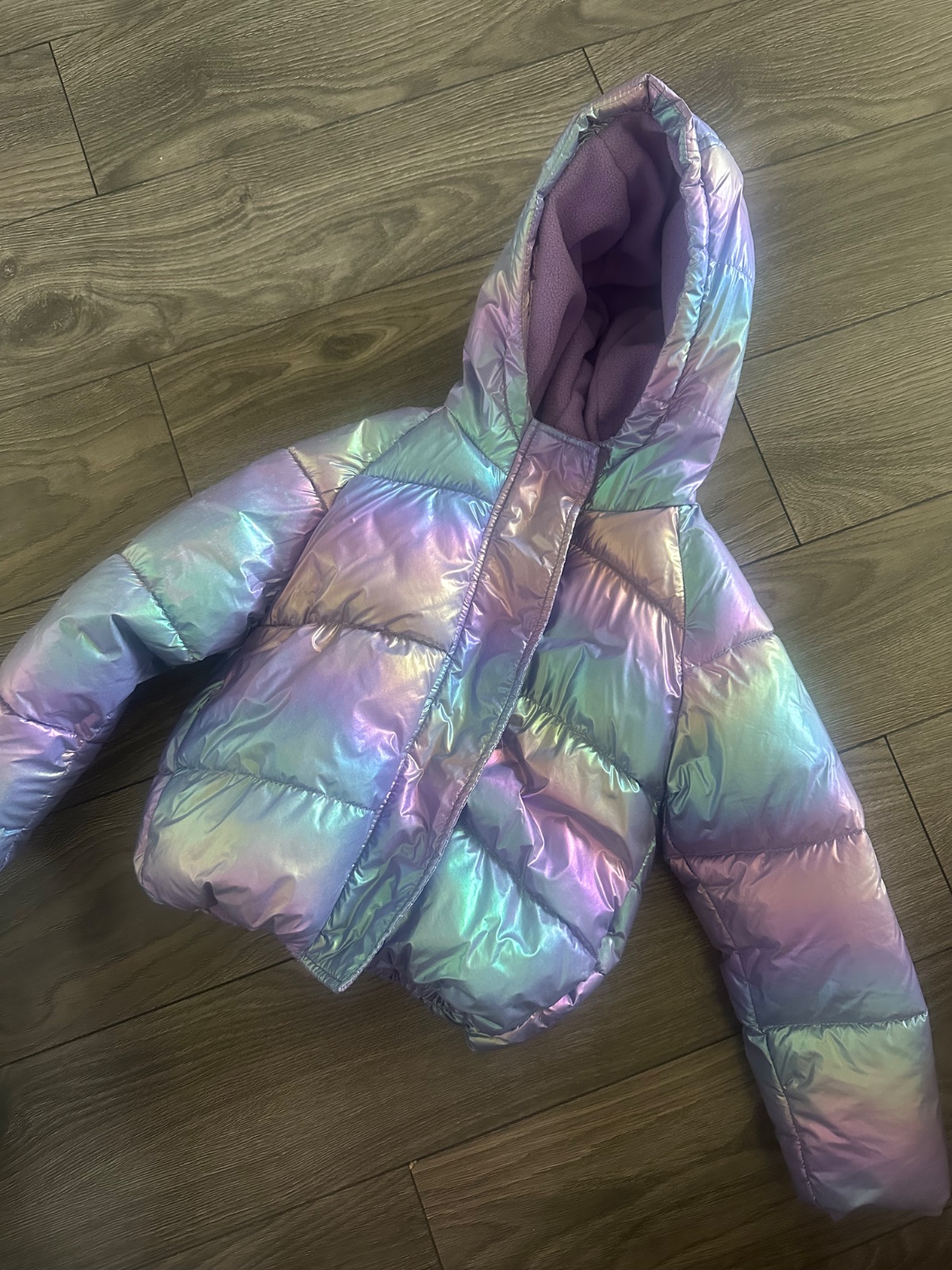 Stylova holograficka bunda velkost 122 a solutne top bezchybny stav, oblecena bola 2krat