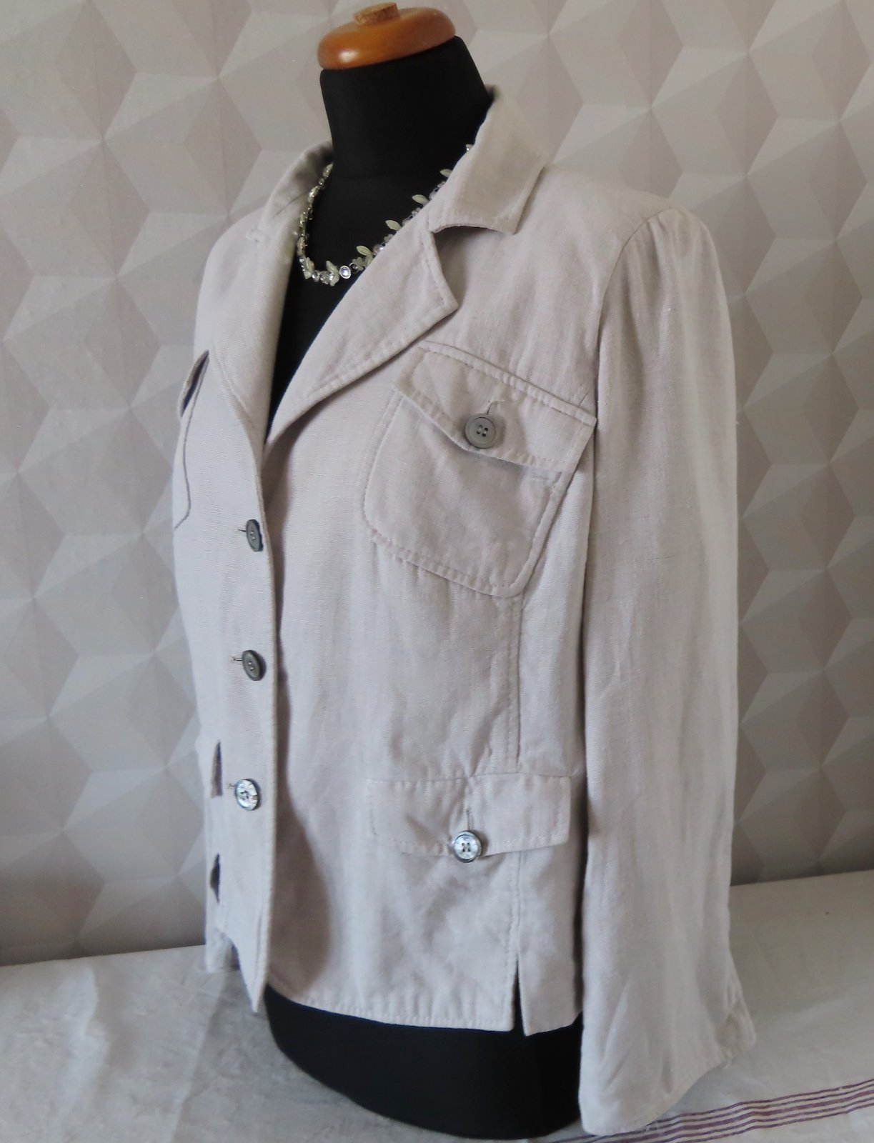 Dámske ľanové sako prírodnej "beige" farby, značka Heidi Stefanie, veľ. XL , rozmery: dĺžka 59cm, pod pazuchami 2x57cm, rukáv 59/43cm