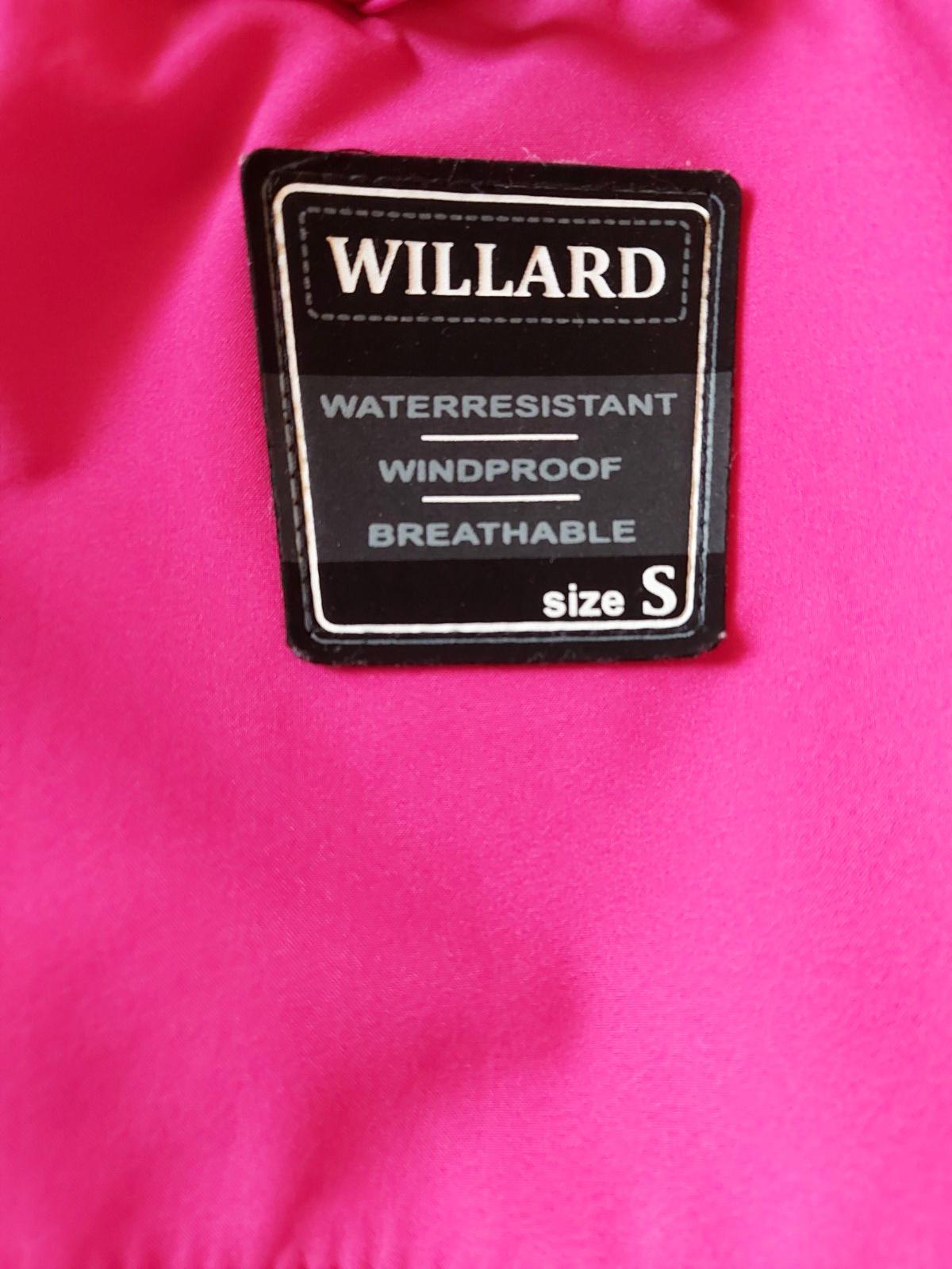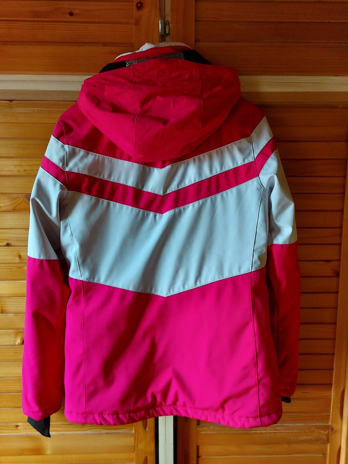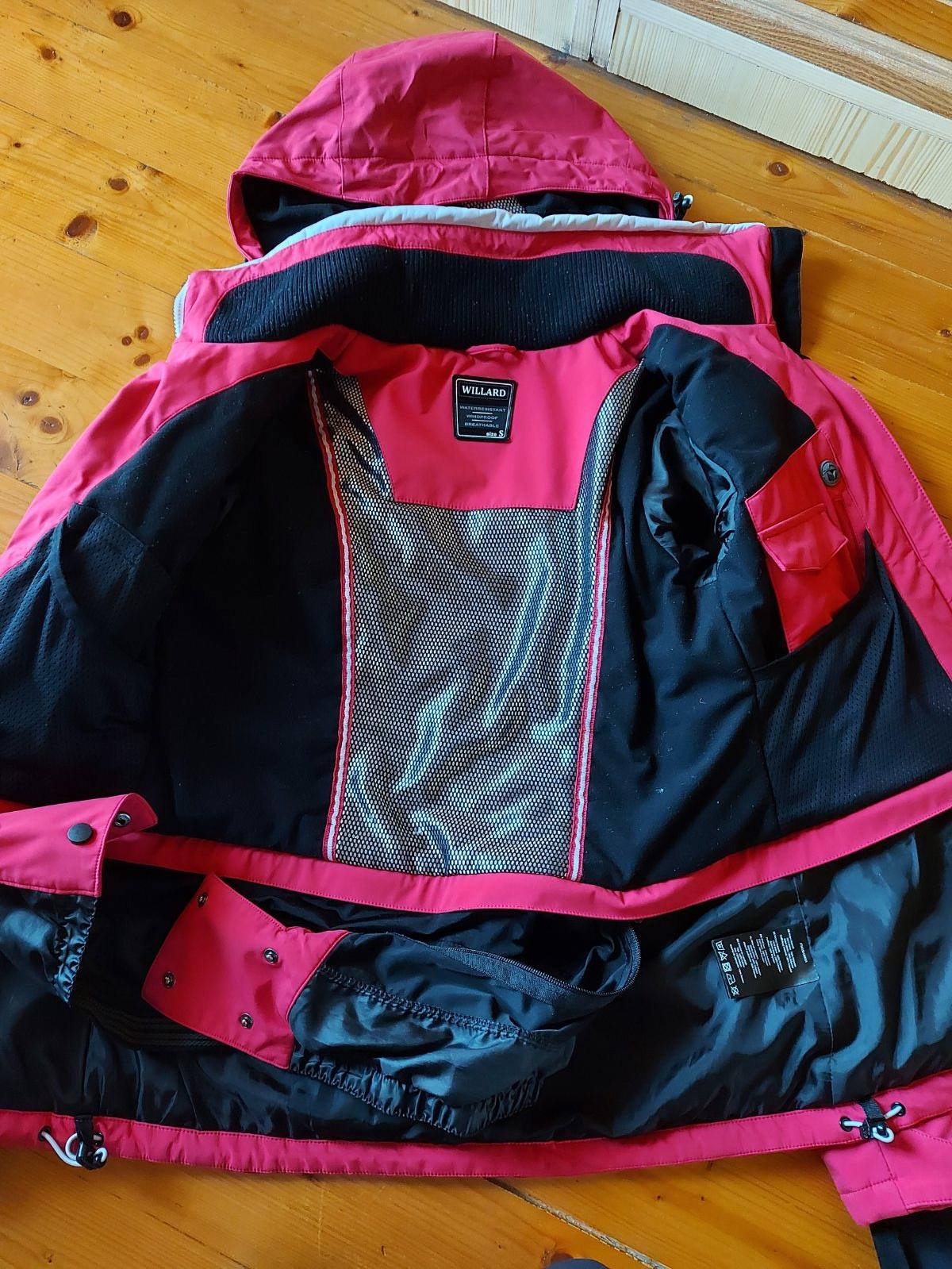 Lyžiarska bunda WILLARD, š. pod pazuchami 48, d. rukávu 64, d. zadného dielu 68,5, kapucňa na sťahovanie, 1 vrecko hore na zips, 2 vrecká po bokoch na zips, 4 vnútorné vrecká, rukávy ukončené elastickou látkou-väčší komfort tepla-viď foto, vnútri pás na zapínanie na cvoky-viď foto, super stav