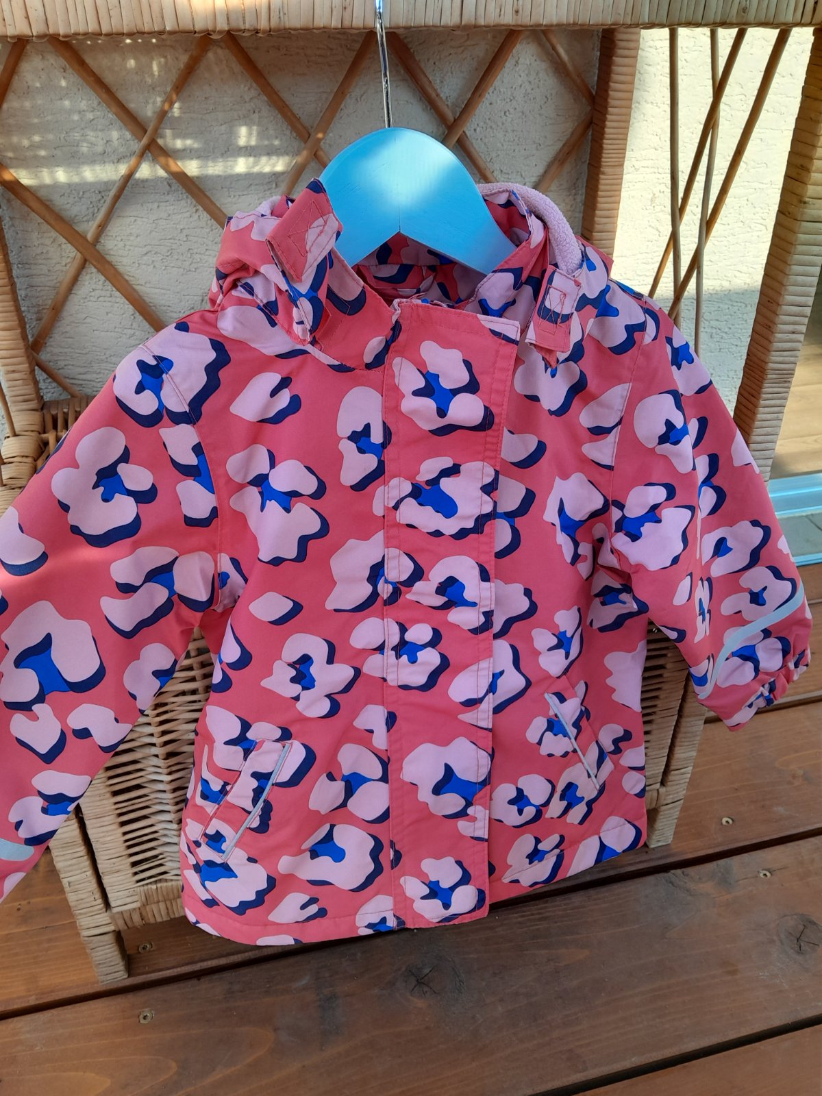 Praktická bundička na prechod, čiastočne vodeodolná, podšitá flisom Odopinateľná kapucňa Nosením šuchnuté reflexné prvky Veľkosť 86-92