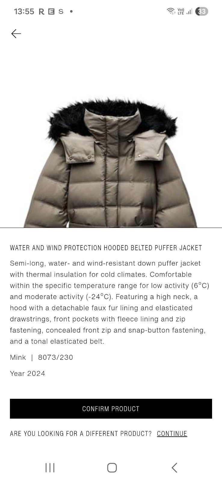Malicko nosena tepla budna Zara po bedra. Tepla.