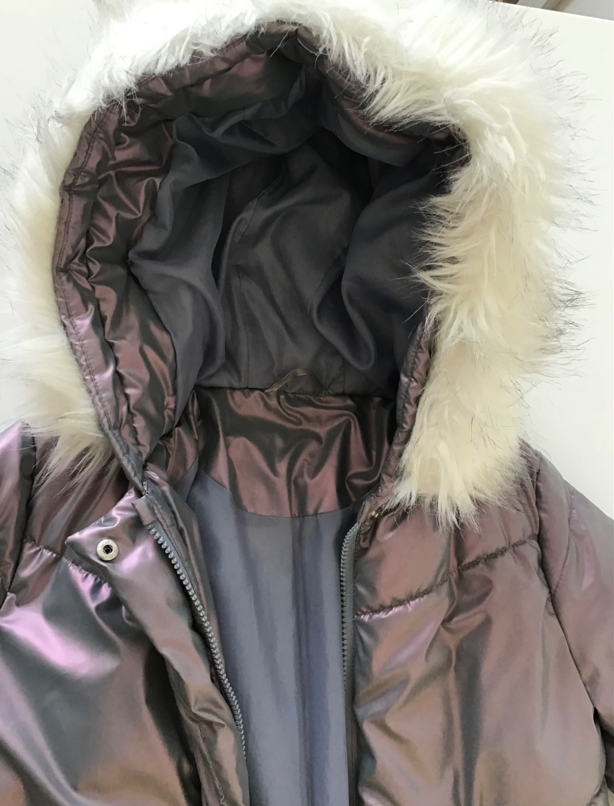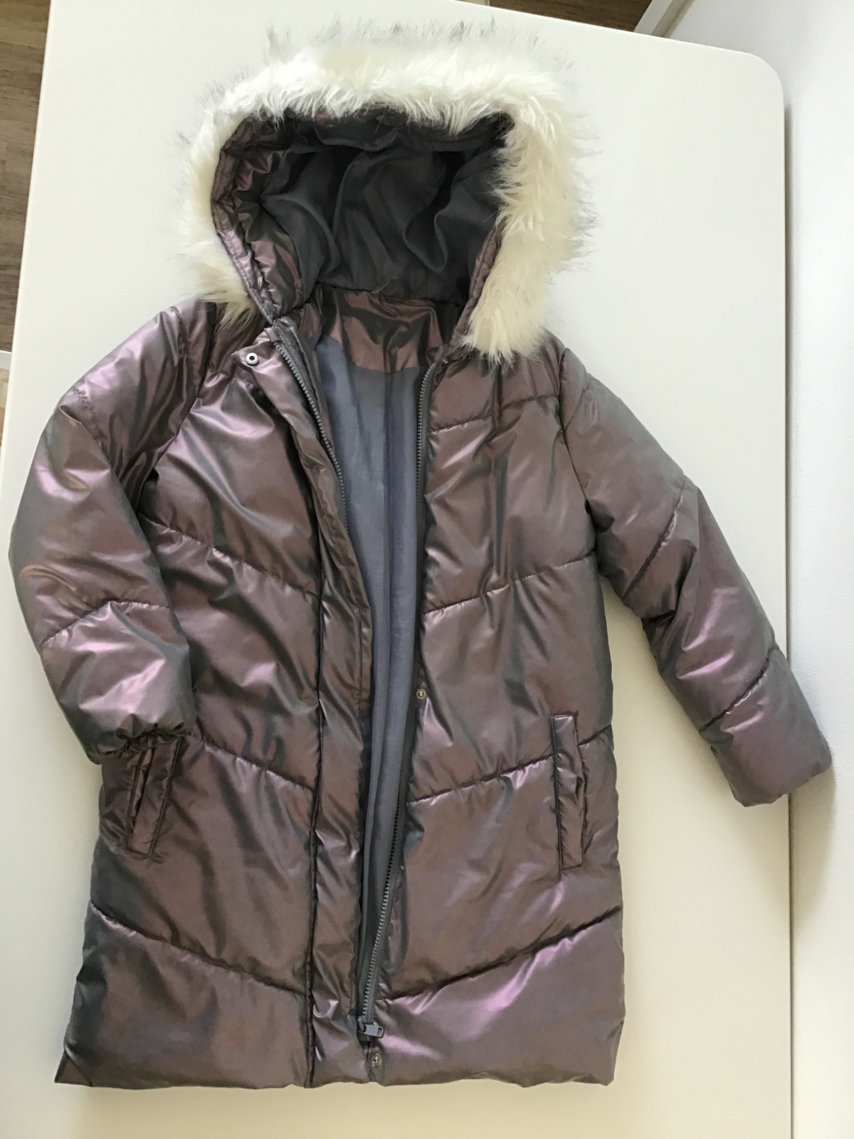 Posuvam tuto paradnu bundu, ktoru kupujeme uz 3x za sebou, je umyvatelna, cize ked sa zaspini, staci utriet mokrou handrickou, za mna lepsi material nepoznam. Kozusinka na kapucni je odopinatelna, nosena bola casto, ale nie je to na nej vobec poznat, chyba stitok, no velkost odhadom 134/140. Cena 10€ plus postovne