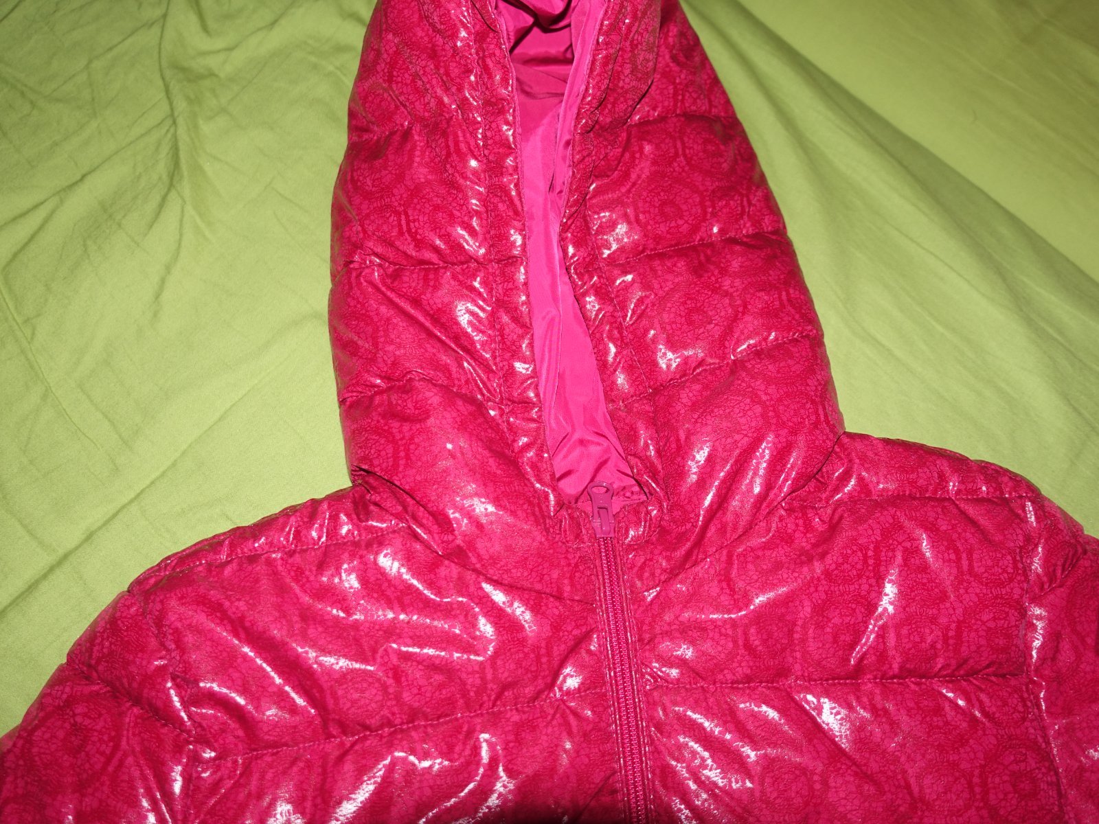 Krasna zimna bundicka- nova, bez visaciek. Nie je uplne hrubizna, skor do miernej zimy. Je urcena na vek 13-14rokov a vysku 170cm, ale mne sa zda skor ta 164-ka.
