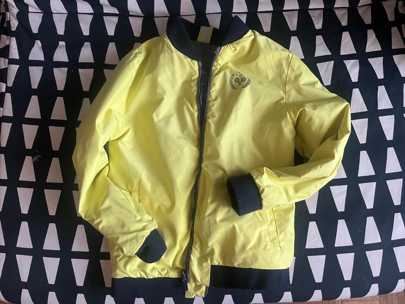 Málo nosená, akurát na patentoch maličké žmolky. Farba krásna neónovo žltá.