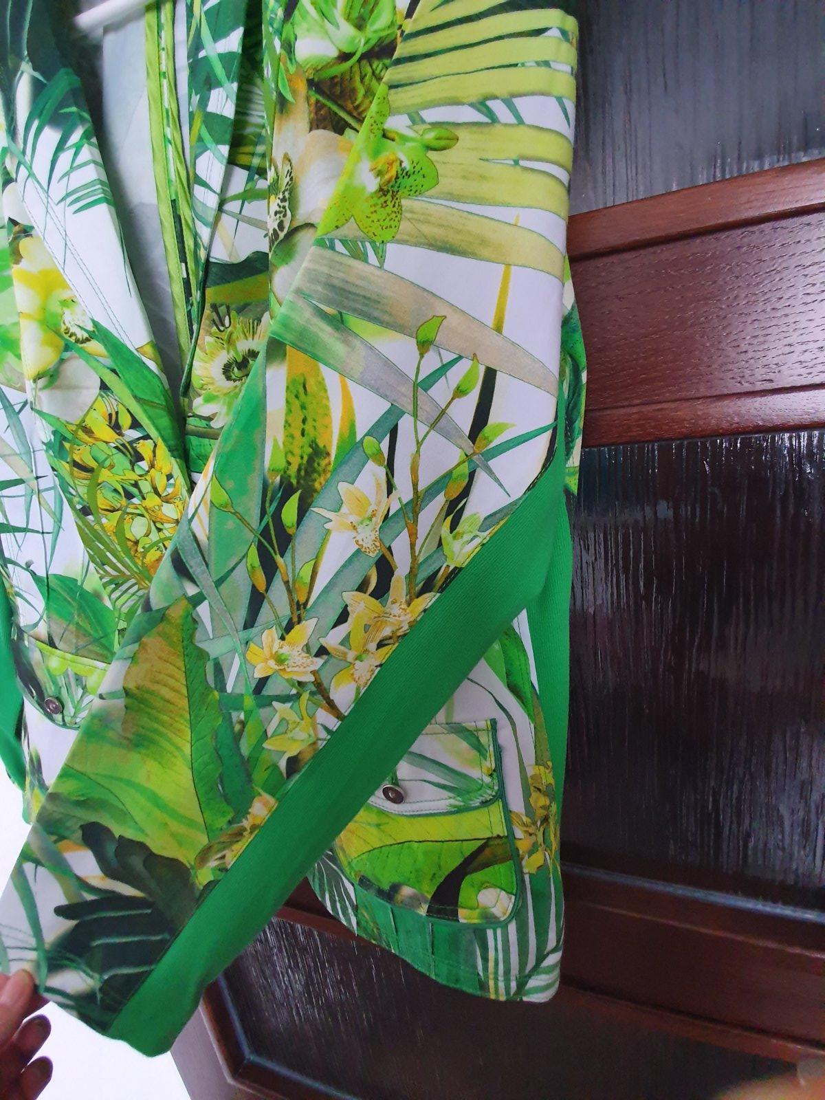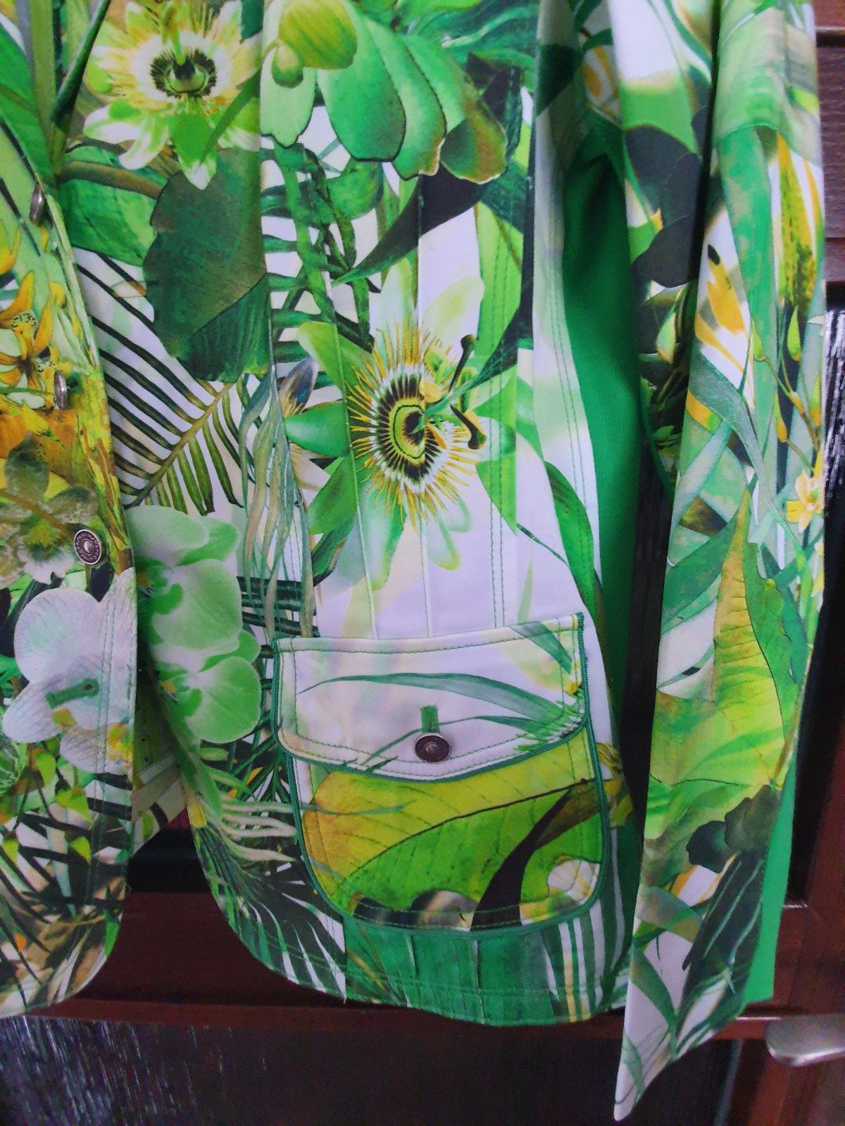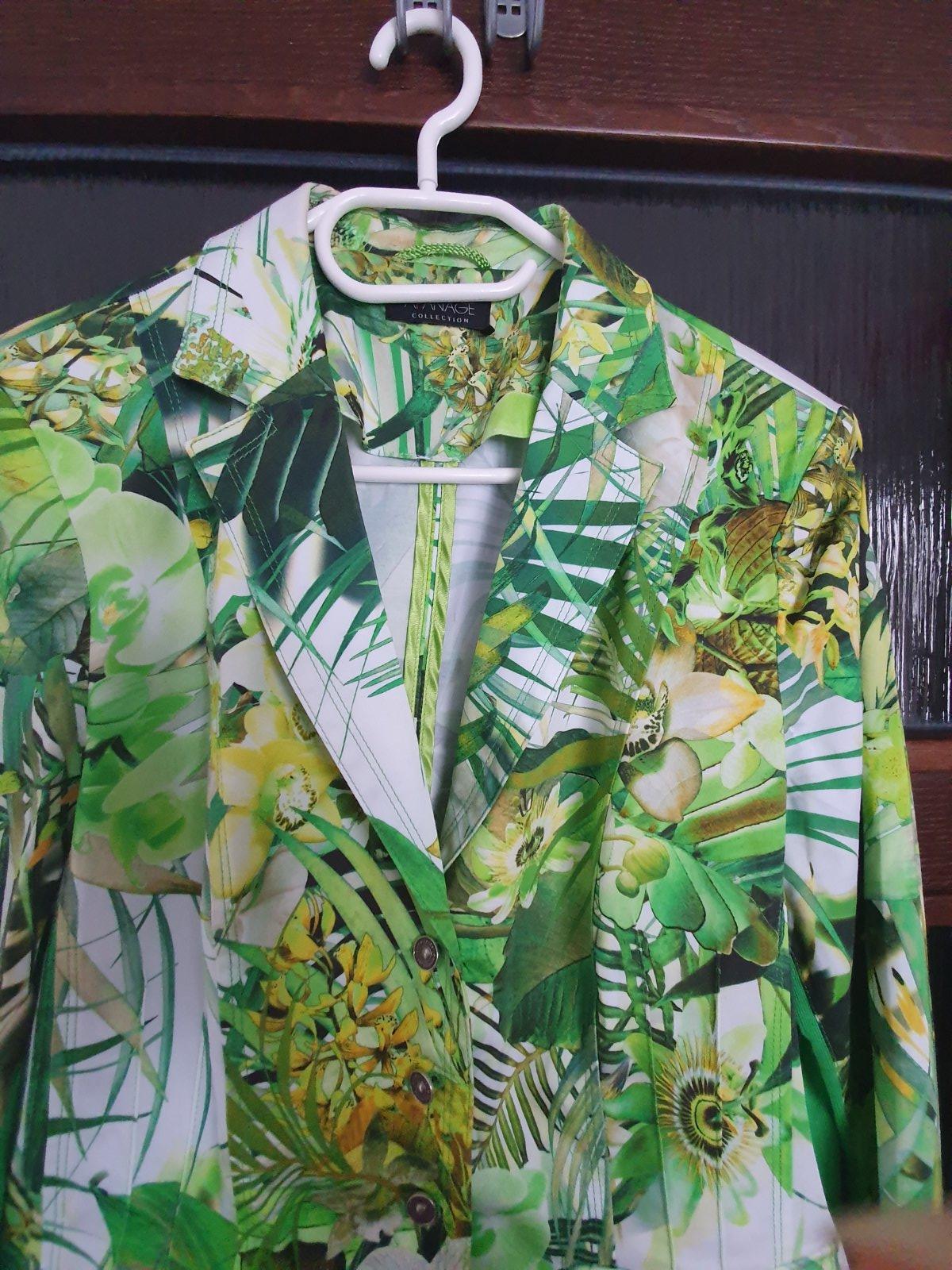 Sako je minimálne nosené, takže v top stave. Veľkostne sedí na 42/44. Kvalitná nemecká luxusná značka Apanage, mám v bazáriku viac ks z tejto značky, oblečenie majú pekne prepracované s nápaditými vzormi.