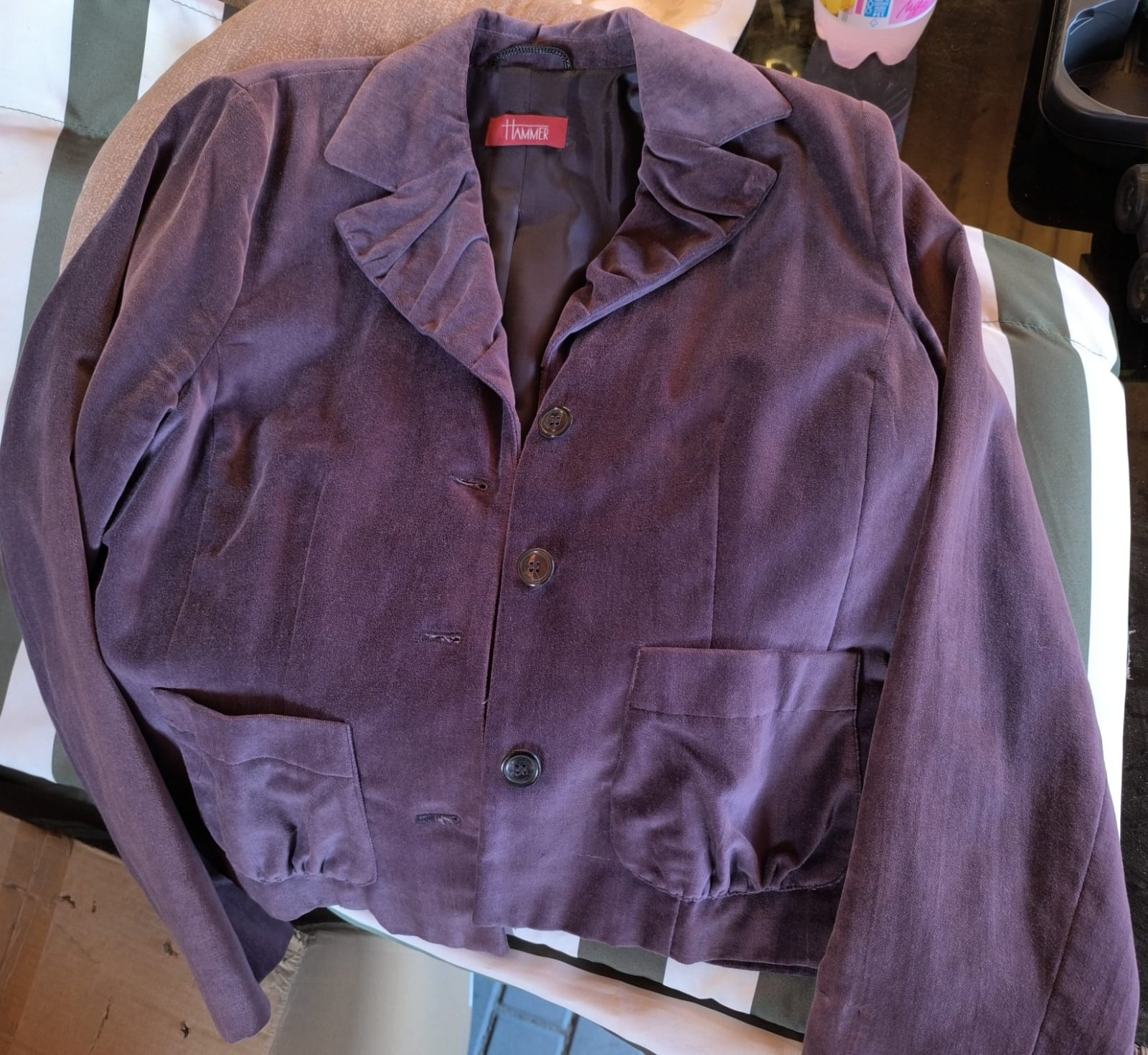 NA SEBE NEFOTIM!!!Kvalitny romanticky kabatik-sačko..volanikovy strih krasne tvaruje postavu..tmavofialova farba ako na predposlednej foto..vhodný aj na spol.udalost aj do prace ..dlžka zadna 57 cm...