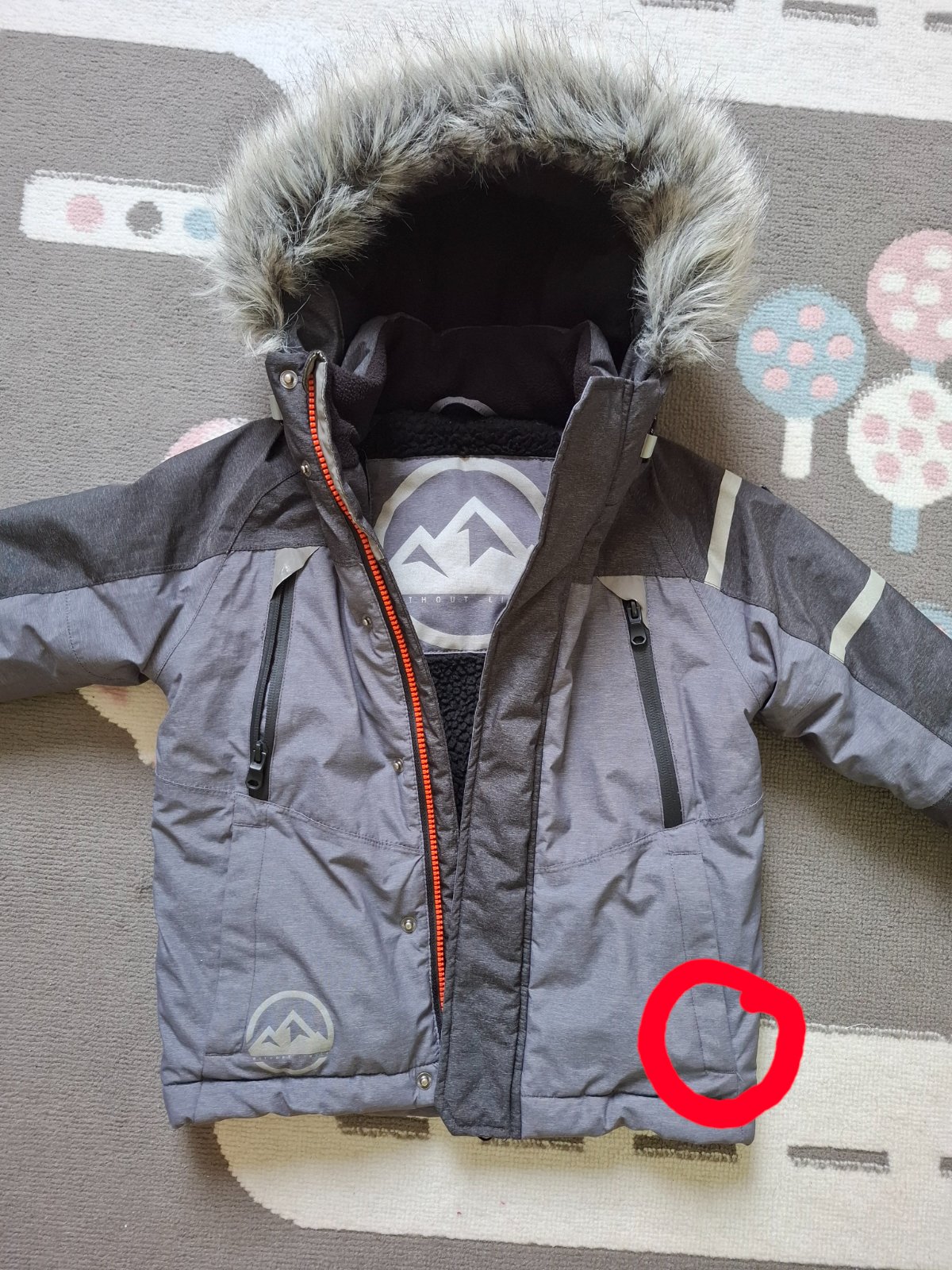 Super frajerska bunda pre chlapca v super stave, len malinké natrhnutie latky na vrecku, zbadať len podrobnym skúmaním 👍😎