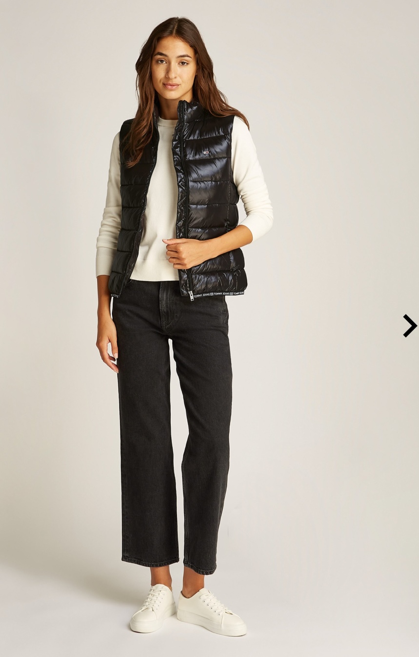 TOMMY HILFIGER prekrasna damska vesta ciernej farbe nadherna leskla