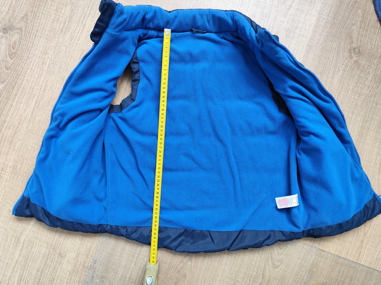 Veľmi dobrý stav, hrubá, pekná, dvojradové zapínanie. Veľkosť uvedená 9/10 rokov, syn nosil tak 146, 152.