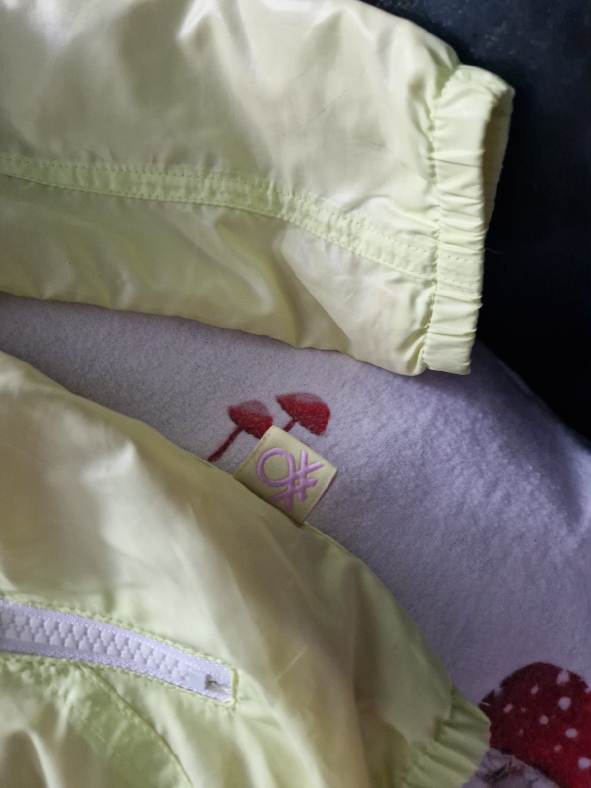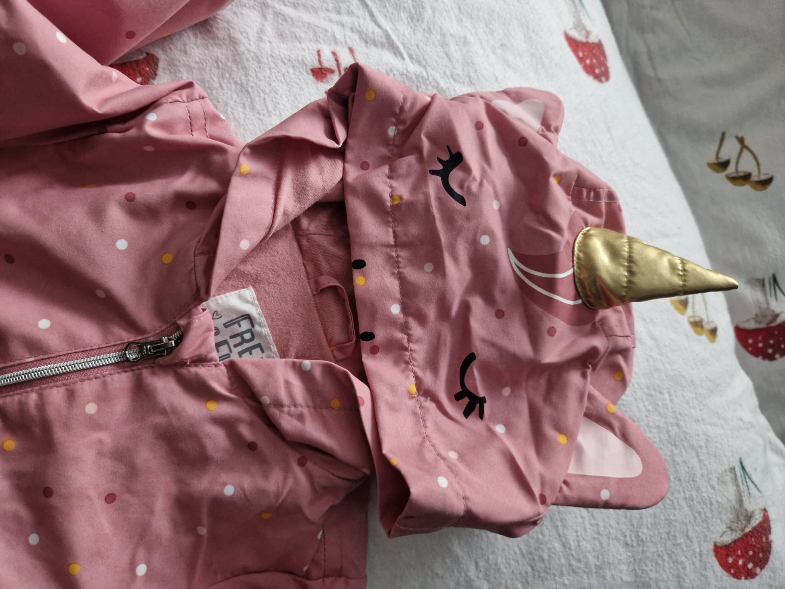 Šuštaková bunda z dvoch vrstiev, odopinacia kapucňa. Bez poškodení. Odporúčam, dieťa neprefukne.