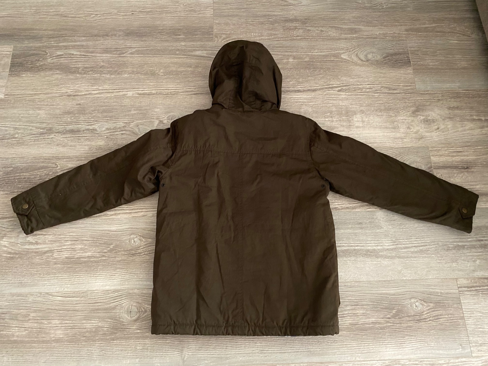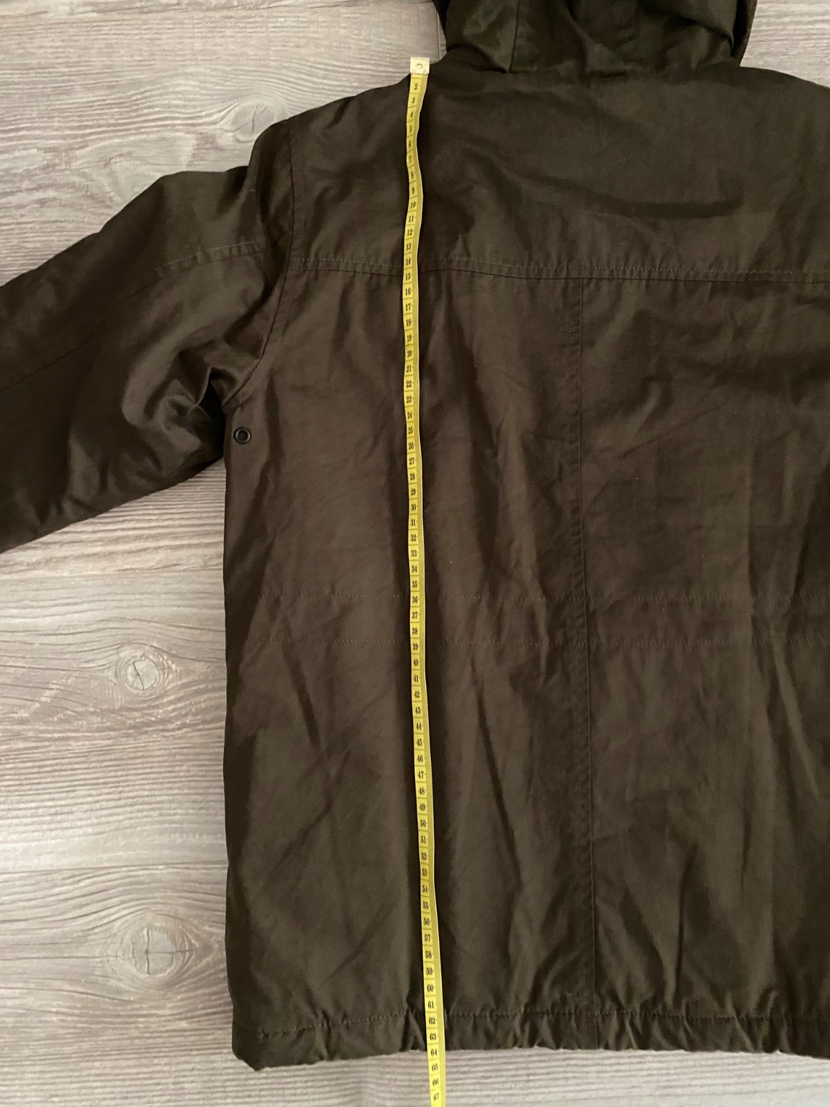 Predám bundu s kapucňou, bez poškodení. Dĺžka 70 cm, dĺžka rukáva od krku 67 cm a pás 2x57 cm.