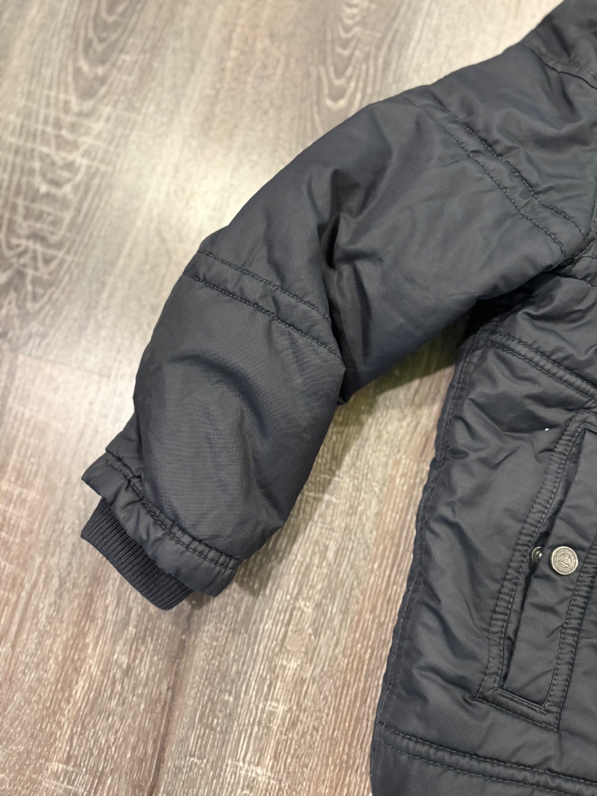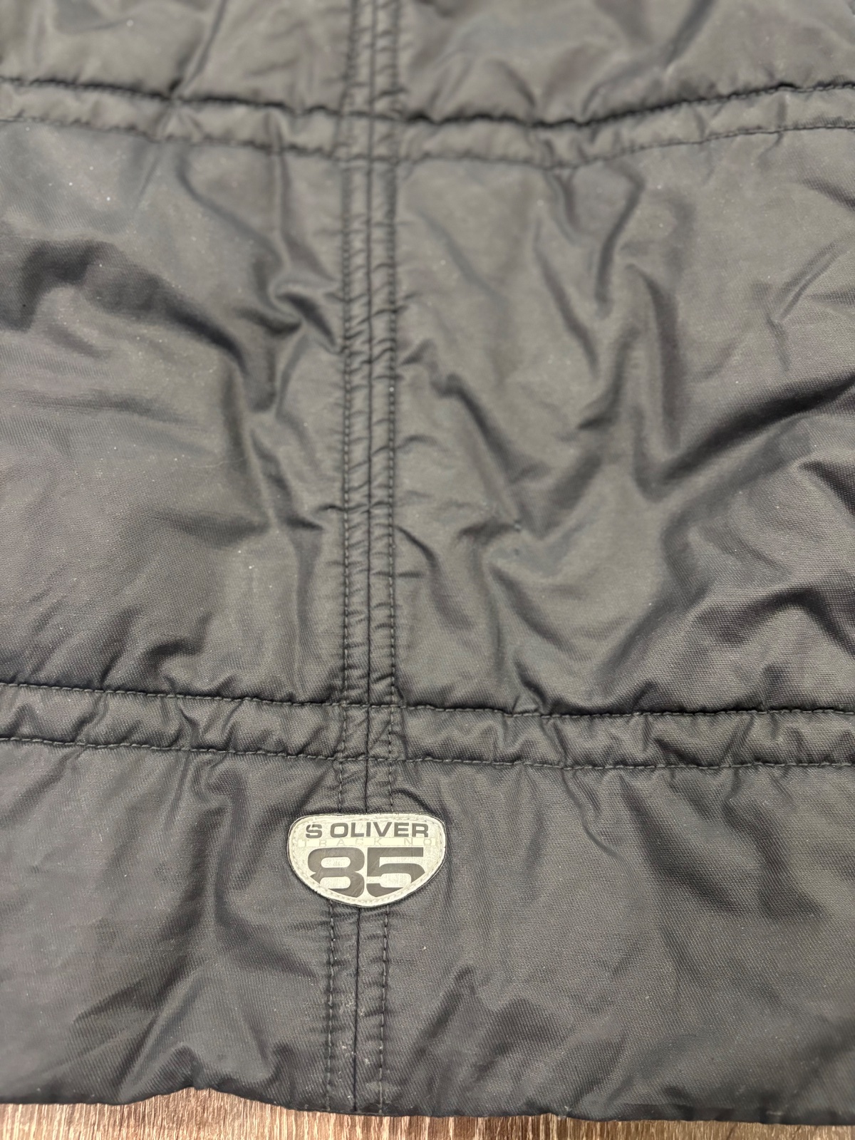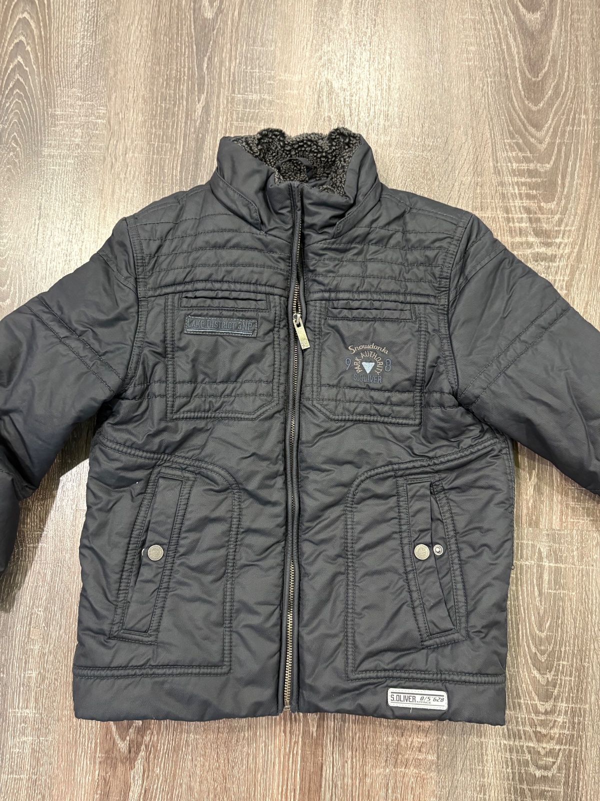 S.Oliver štylova chlapcenska vetrovka na prechodne obdobie,velkost 128/134,tmavosiva farba.Dlzka je 56cm,dlzka rukava od krku je 60cm a sirka v podpazusi je 43x2cm.Vzadu na chrbte 2 male bodky