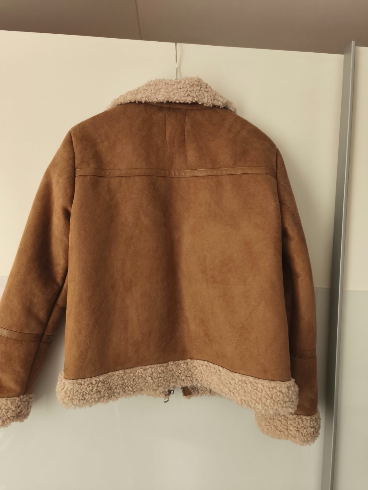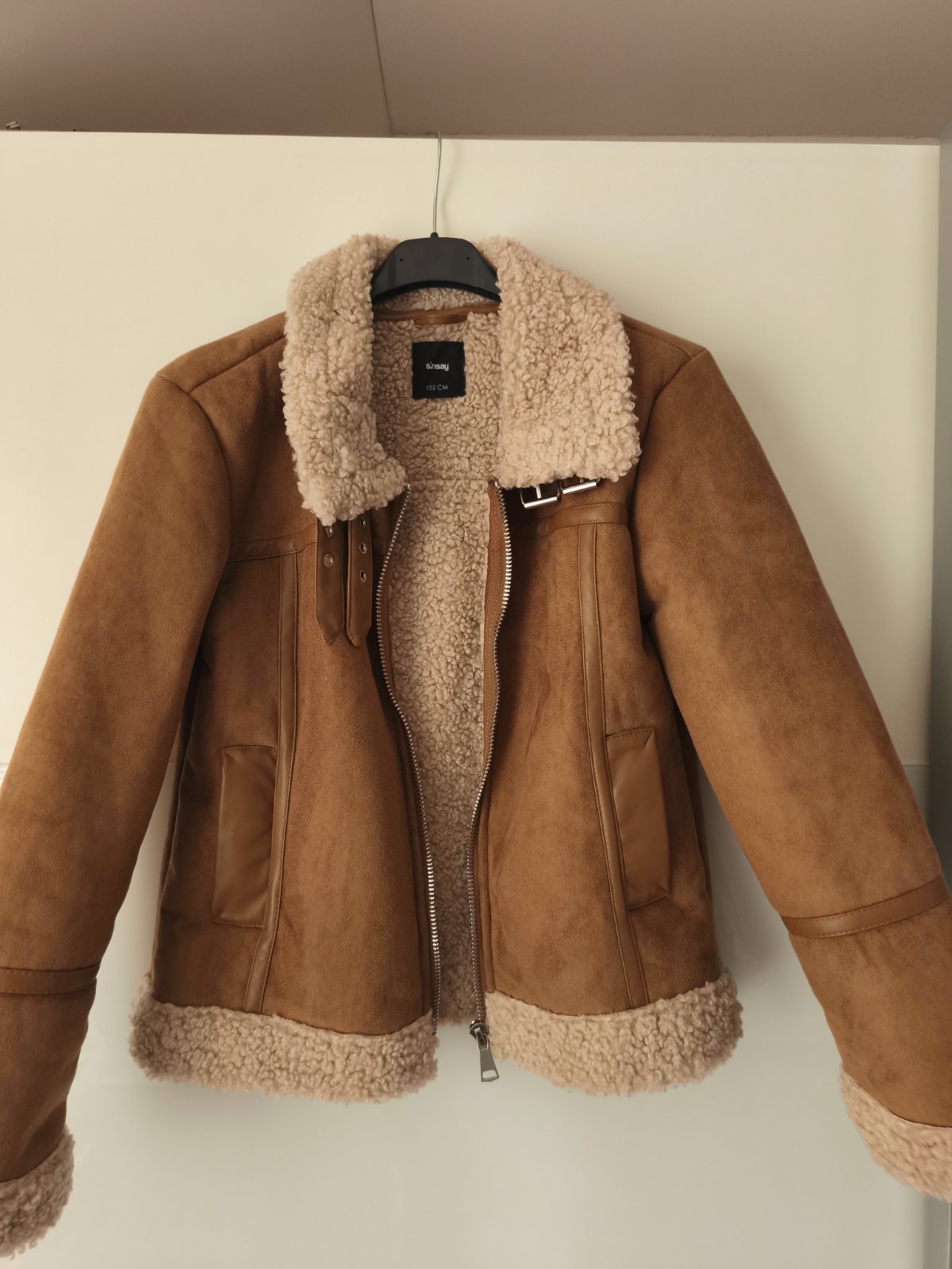 veľmi pekna, malo nosena, hruba bunda,pekný stav, pri foteni na chrbte dole som nasla menší slaby fliačik, vsetko pofotene