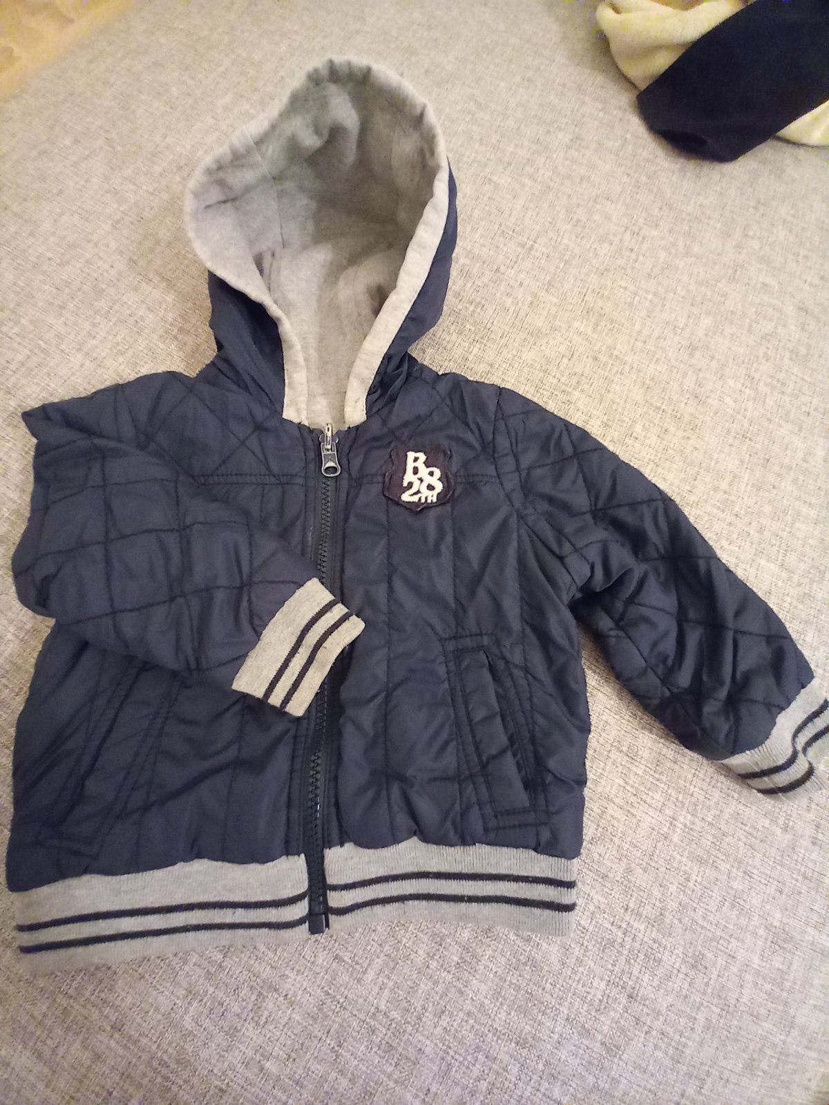 Malo pouzivana v dobrom stave. Bez poskodeni. Zapinanie na zips a cez zips sa este daju zapnut gombiky. S kapucnou, voredu vrecka. Zvnutra podsita tensou latkou. Na stitku je velkost 9-12 mes., al...