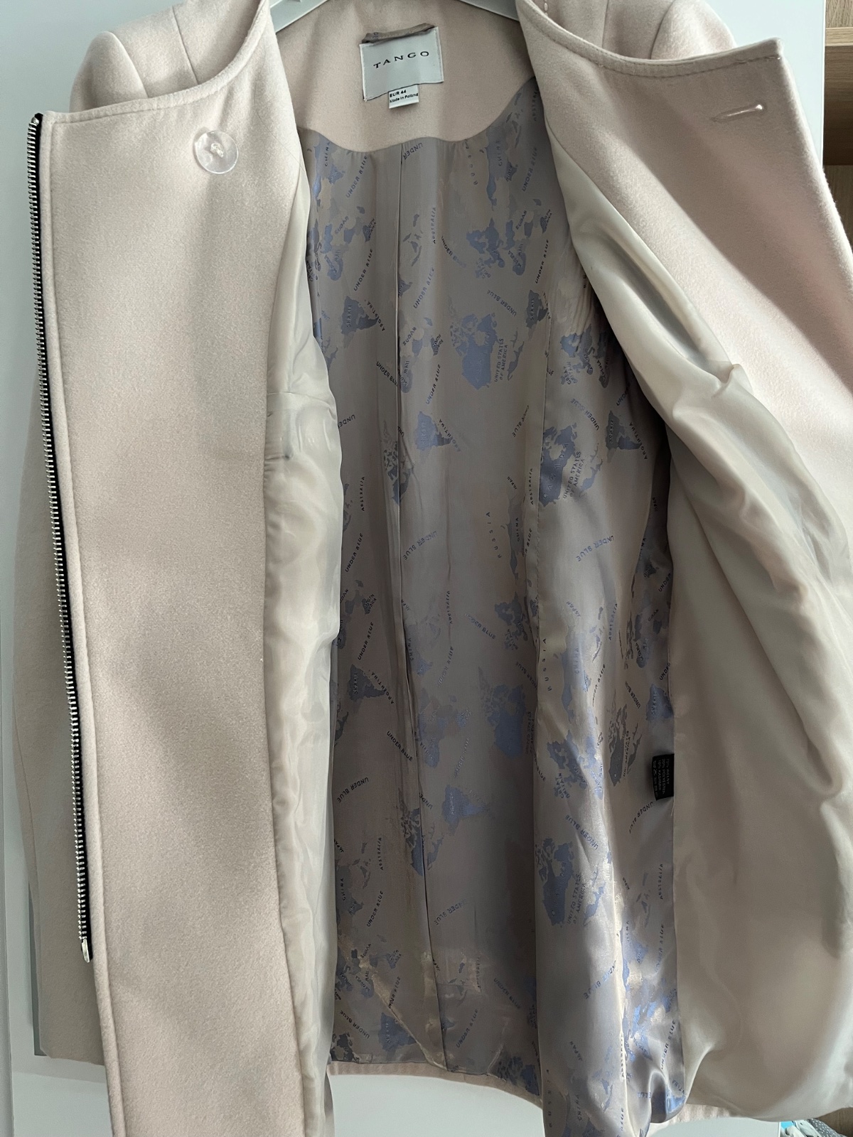 Luxusna damsky plašt,bezovej farby,vypracovany.53%polyamid,47%polyester.PC 175€.super stav. Rozmery: vel.44,cez prsia 2x59cm,cez boky 2x60cm,dl rukava od ramena 64cm. Veľkosť: 44 Značka: FUCHS SC...