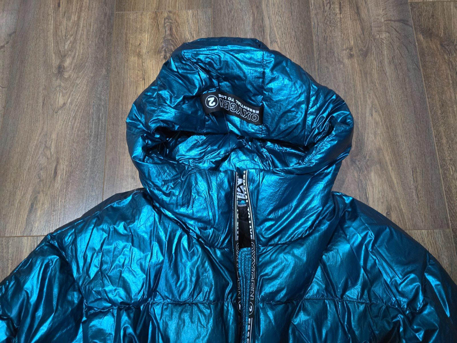 Krásna farba olejovo zeleno modrá, teplá bundička, kupovaná minulú zimu v kamennej predajni. Teplá, štýlova. Mala by byť páperová. Mám ich veľa a nestíham nosiť.