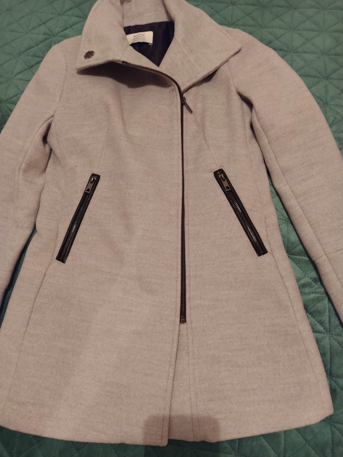 Nový bez visačky, svetlunko krémovo-šedý, prechodný alebo na miernejšiu zimu, veľkosť XS, aj na S /M, šírka pod pazuchami cca 51 cm, dĺžka 101 cm