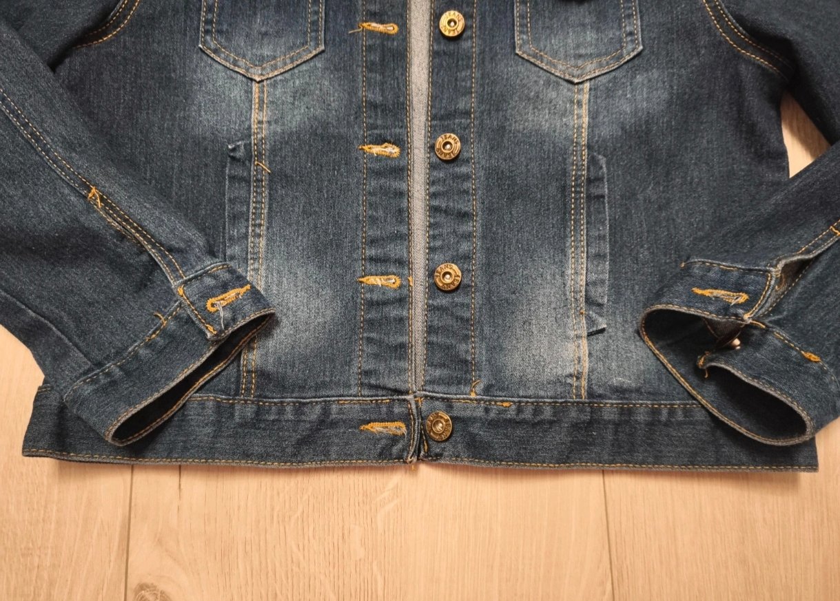 Nosená minimálne veľkosť M , tenký materiál a jemný, tmavomodrá farba vyšúchaneho vzhľadu . Na bunde uvedené XL ,ale sedia na M . V XL by som sa utopila . Pýtajte sa rada ju pre meriam .
