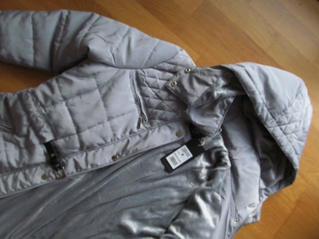 nova zimna bunda. Je zateplena, podsivka je z jemneho mikroplysu. Farba svetlosiva so striebornym nadychom . Bunda nebola oblecena ani raz, je s visackami. Vyborne prepracovana, pekne detaily. Sedi na velkost 38, velkost pisana je M, rada premeriam. Sucastou bundy je kozenkovy opasok. Urcite neolutujete
