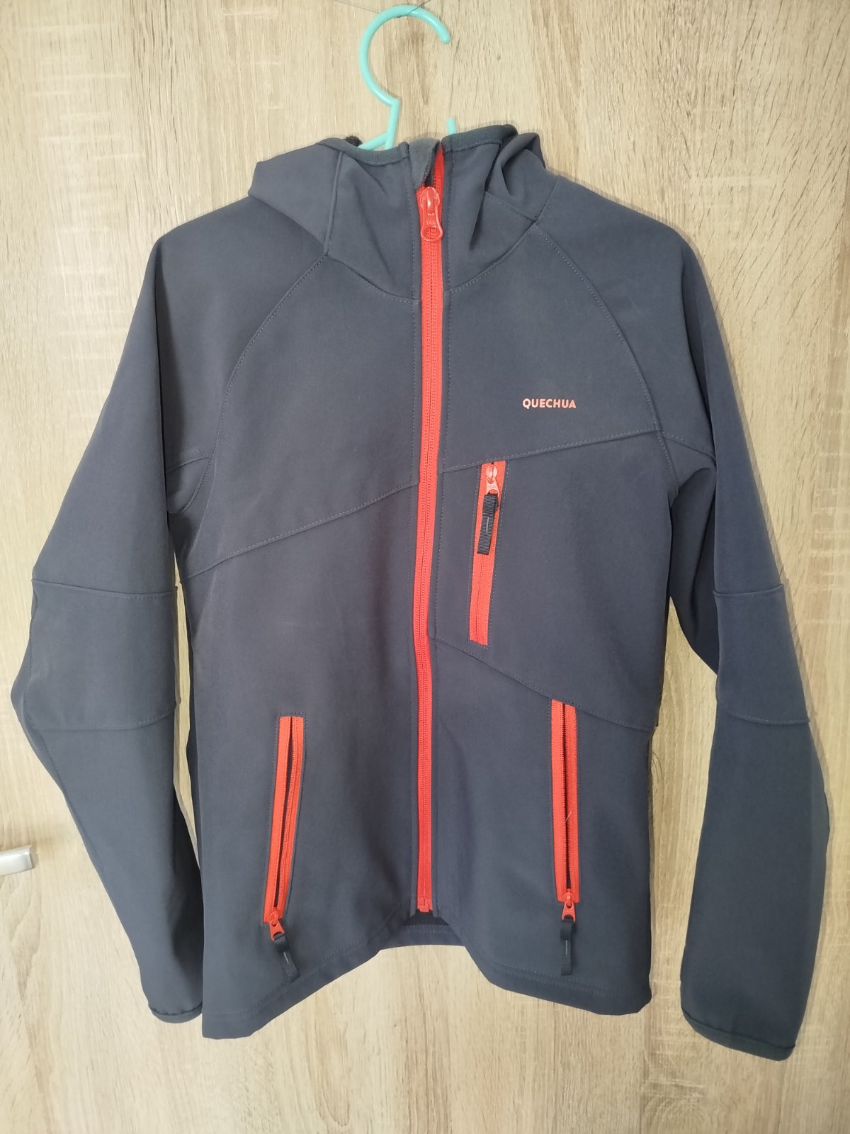 Prechodná chlapčenská vetrovka podšitá mäkkučkým flisom zn. Quechua, veľ. 128. Dĺžka cez chrbát 56 cm, šírka cez prsia 44 cm, vnútorná dĺžka rukávu 45 cm. Cena: 5 € + poštovné 3,40 € Z-Box (Packeta...