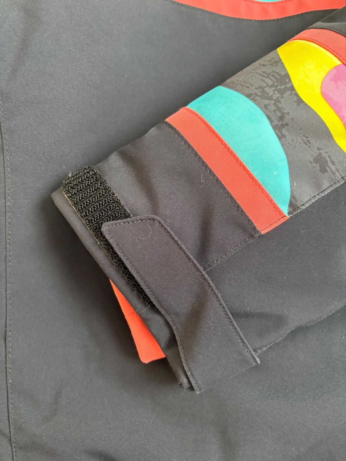 nastaviteľné manžety s klinmi a vnútorné strečové manžety s otvormi na palec udržujú rukávy bezpečne na svojom mieste