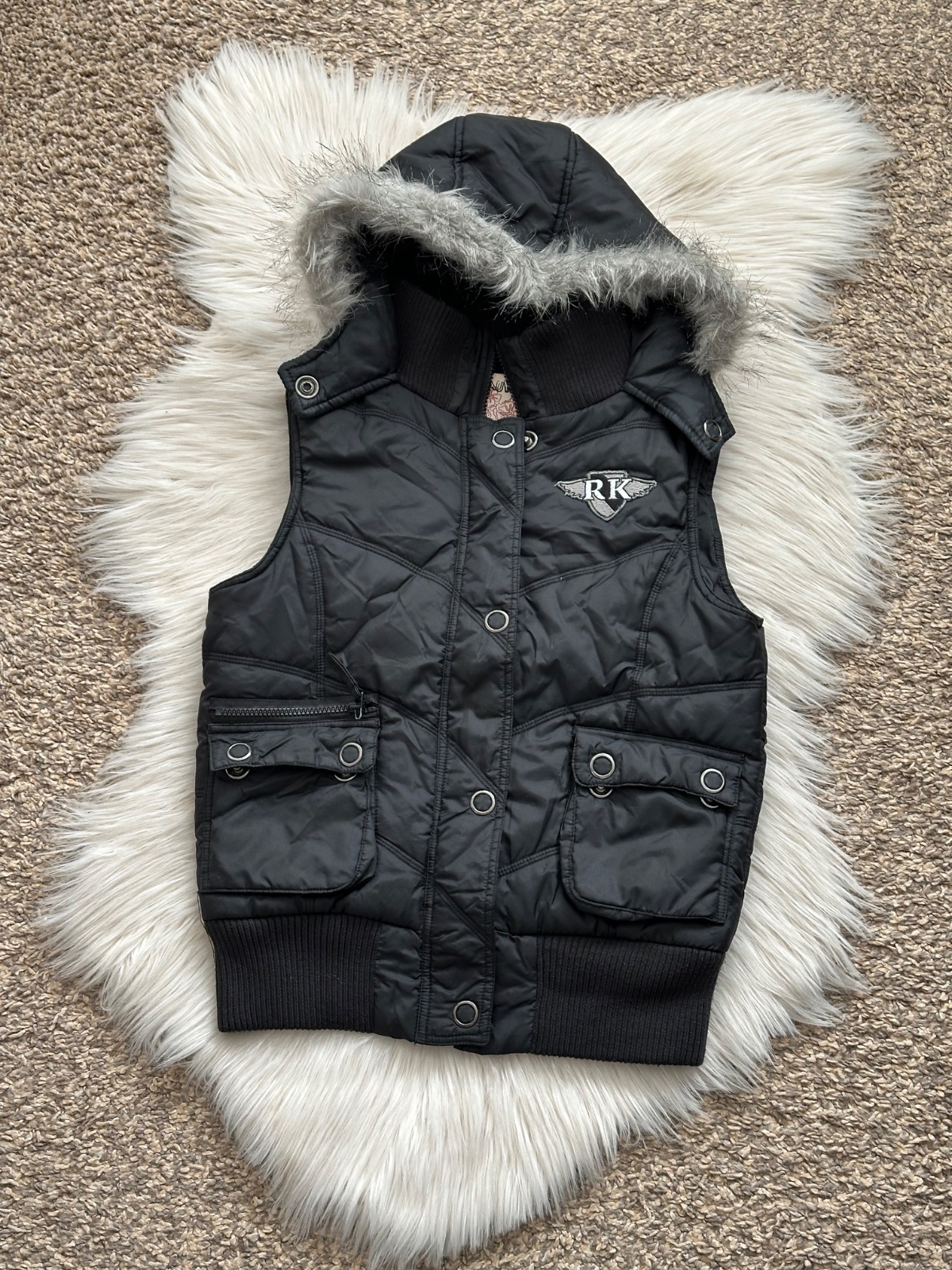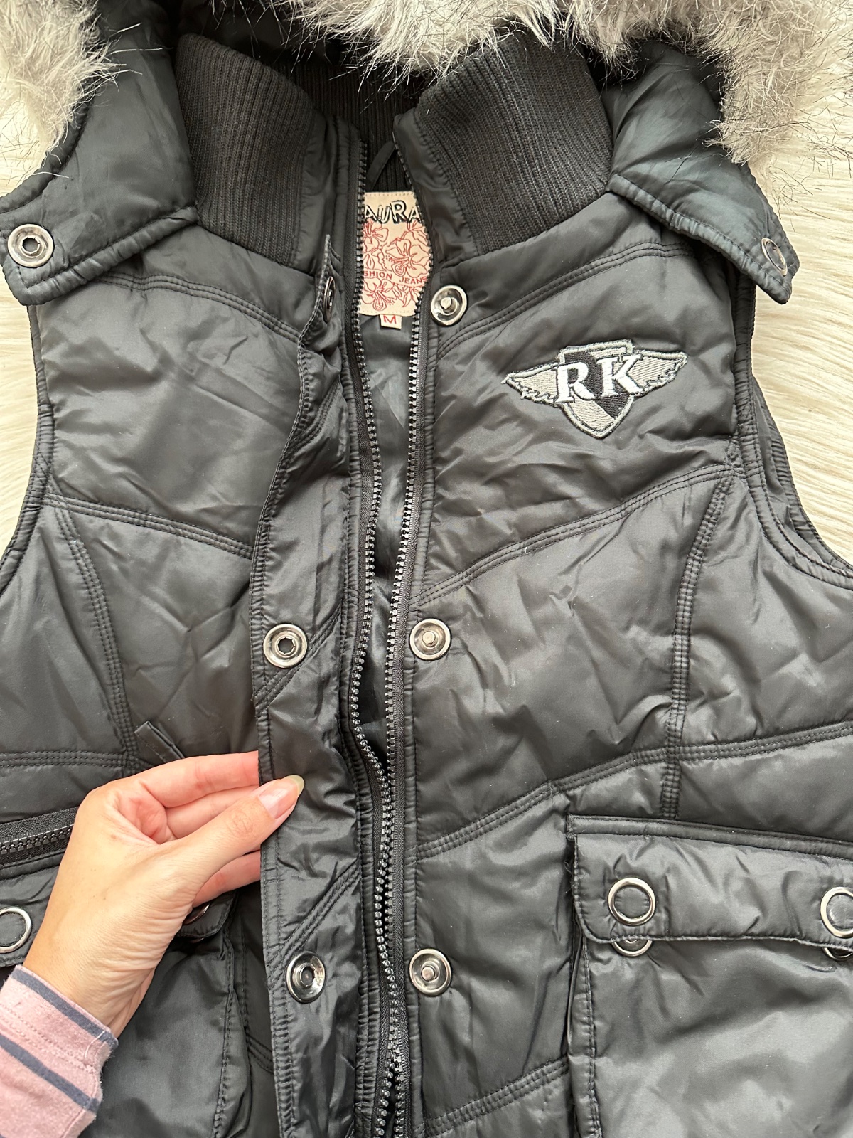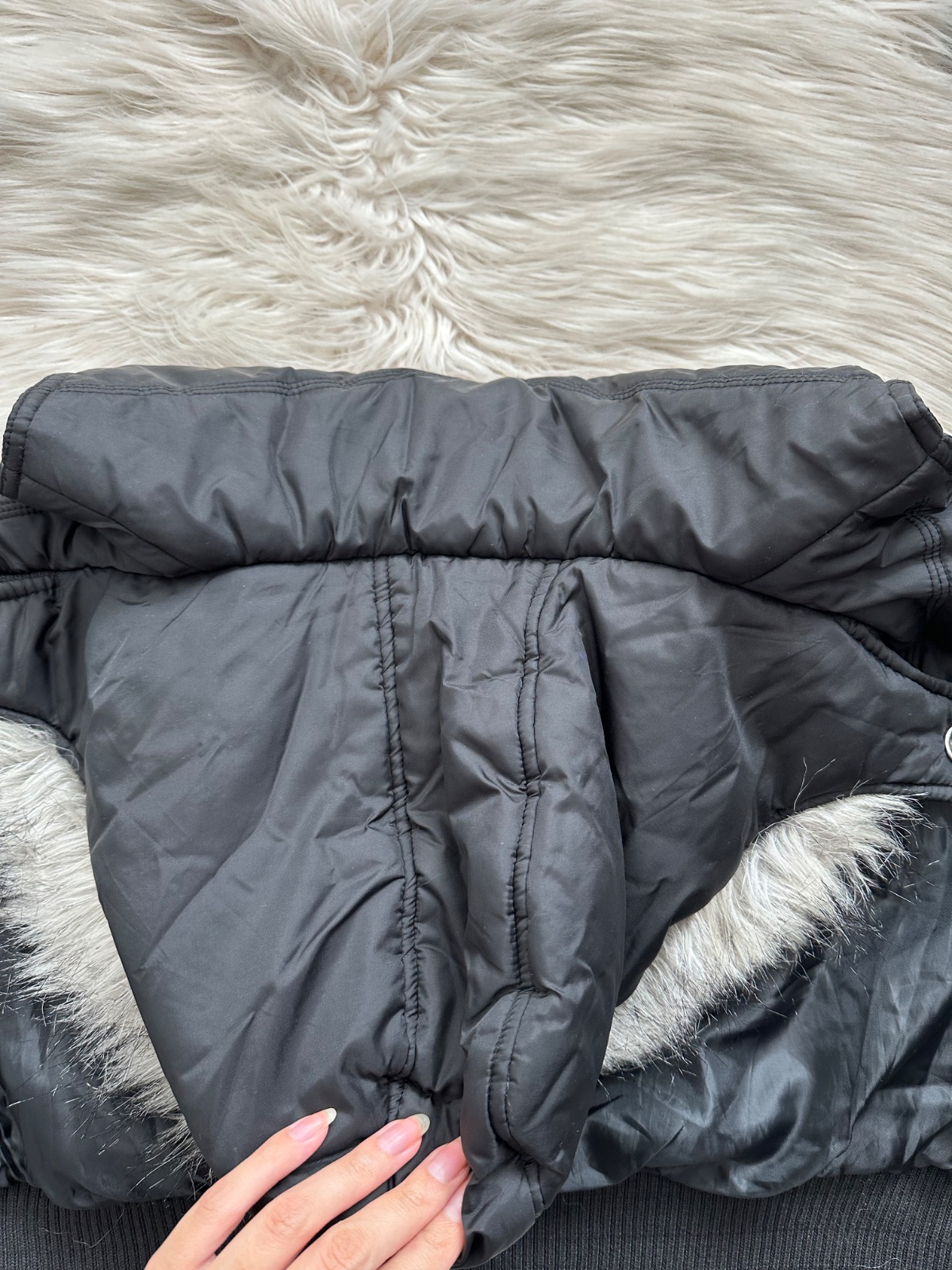Prechodná vrchna vesta s kapucňou a kozusinou S/M