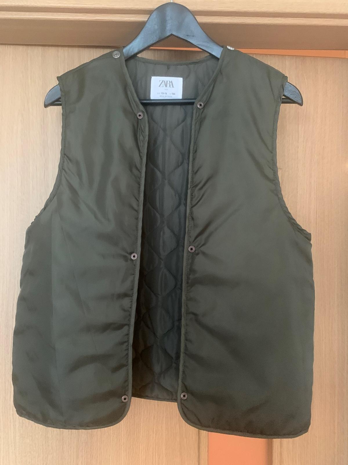 Skvelá zimná bunda rozložiteľná na dve rôzne prechodné bundy s množstvom zaujímavých detailov (nádherná kožušinka, úprava pásu, vrecká, ...) Nosená ako veľ. 164, ZARA uvádza veľ. XS, strihom je von...