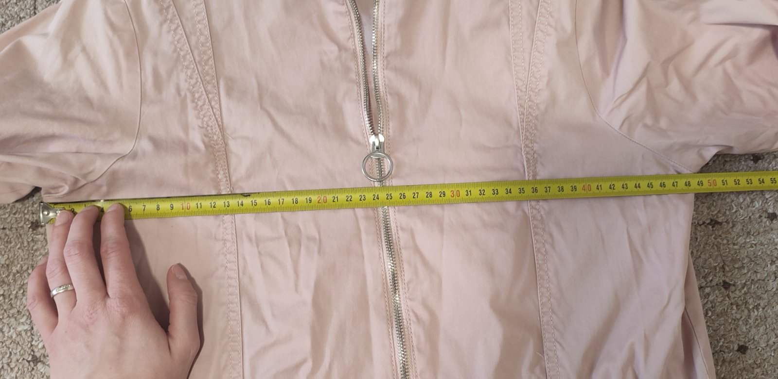 Predám ľahkú bundičku na prechodné obdobie značky House veľkosť S. Bundička je v peknom stave, málo nosená. Farba je najlepšie zachytená na druhej fotke. Rozmery sú nafotené. Pri kúpe viacerých vecí sa rada dohodnem na cene. Osobný odber je možný v Trnave.