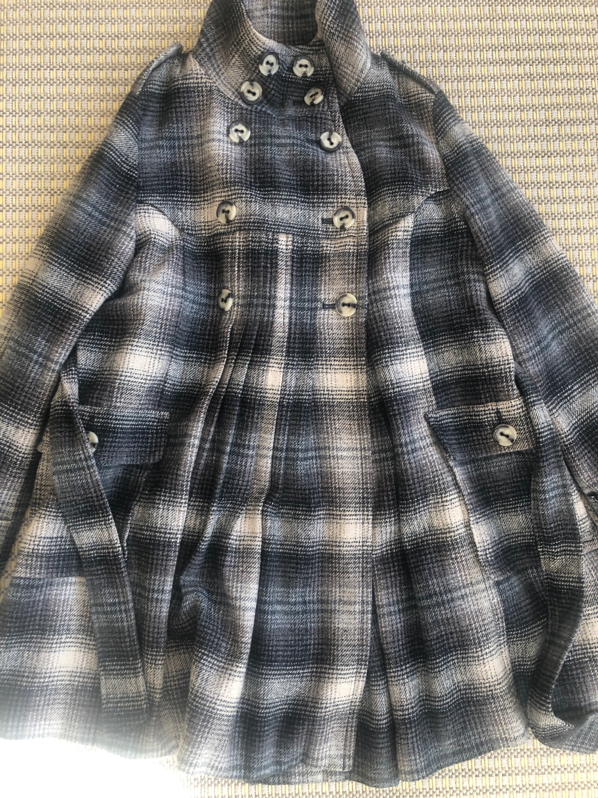 Krásny ženský kabátik v nadčasovom prevedení. Minimálne použitie, bez poškodení. Kvalitný nežmolkavejúci materiál ( zmes vlny, bavlny, viskózy a polyesteru).