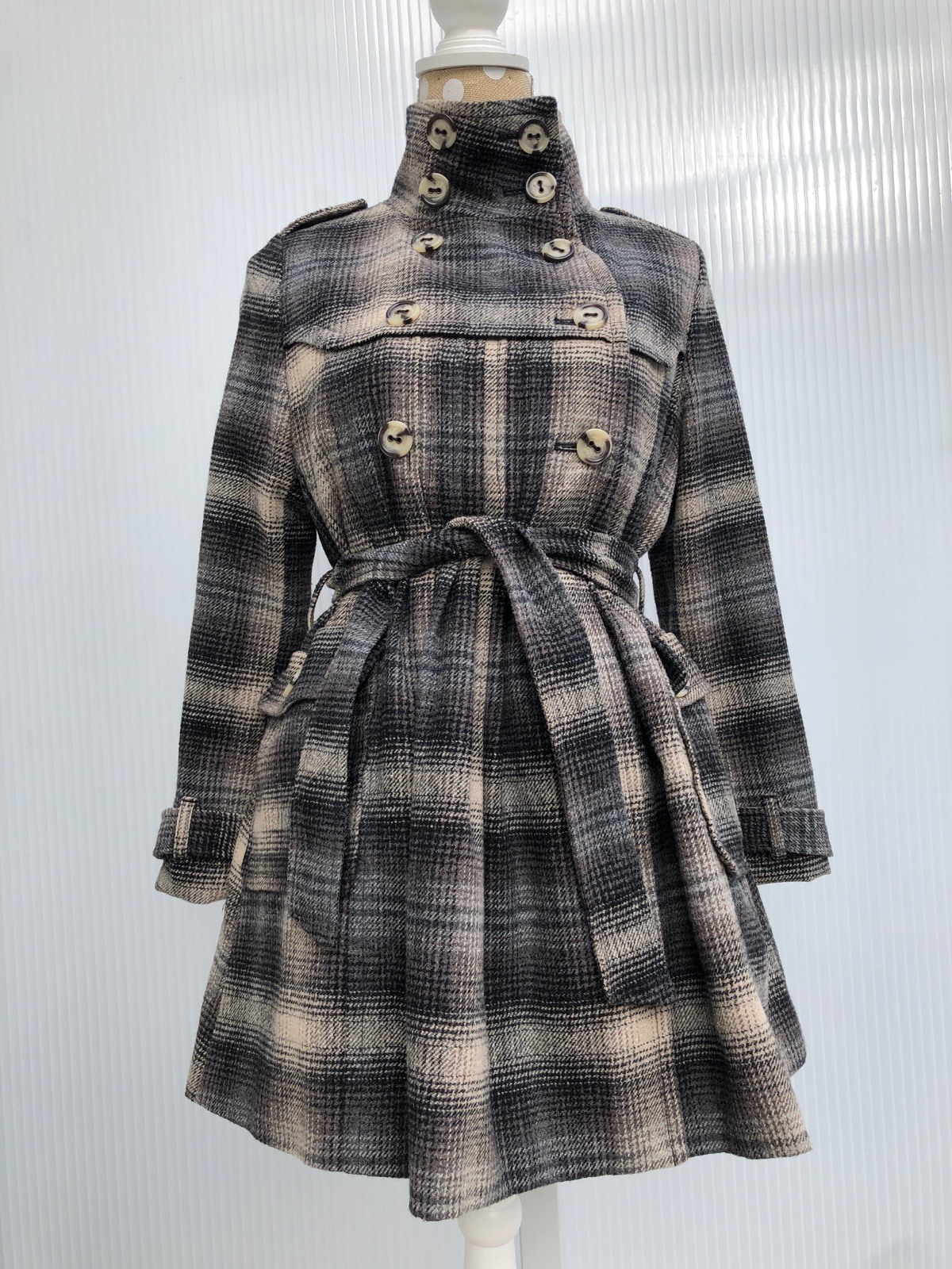 Károvaný prechodný kabát